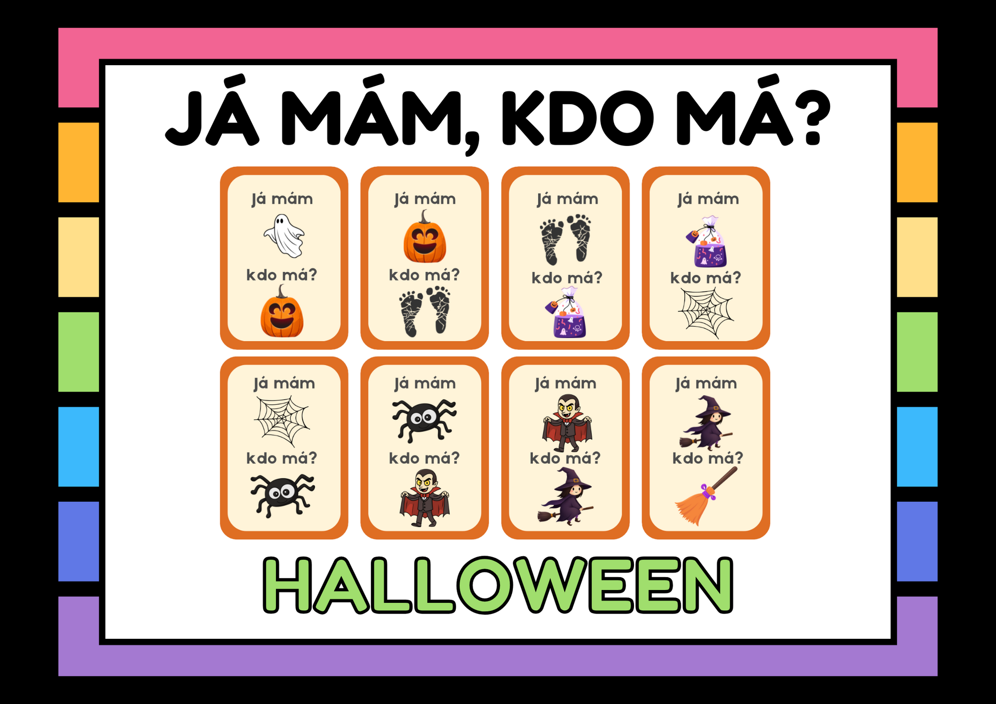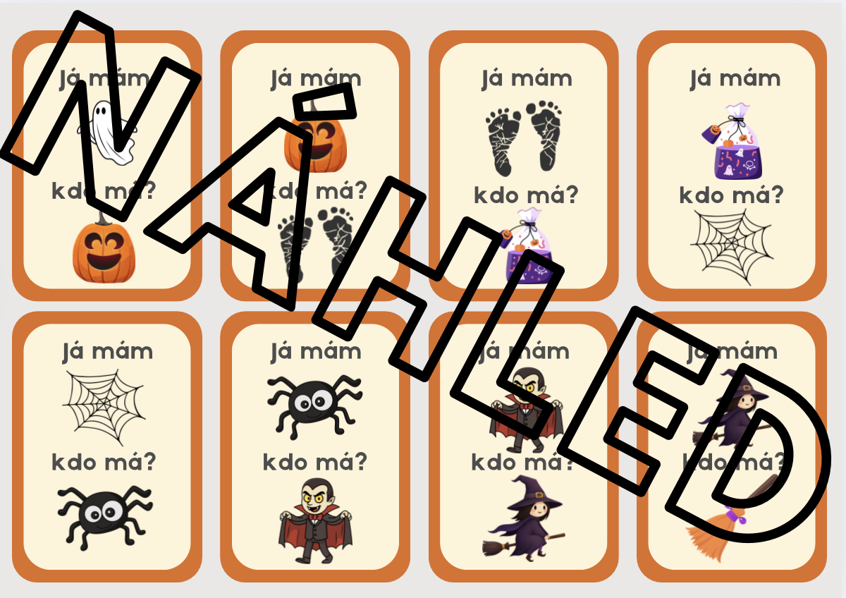 Kartičková hra Já mám, kdo má? na téma Halloween. Vhodné jak pro děti v MŠ, tak žáky ZŠ.