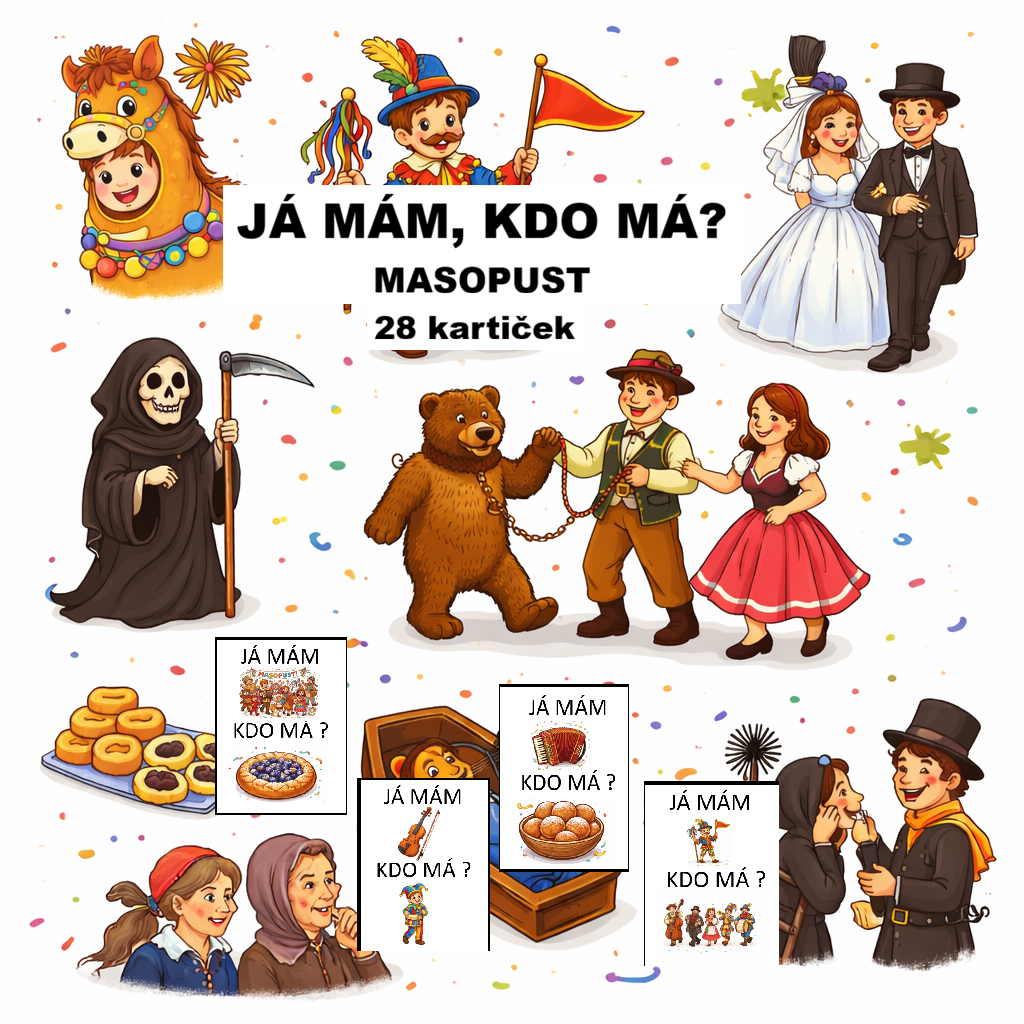 - Procvičování a upevnění pojmů s tématem masopustu u dětí různých věkových kategorií.