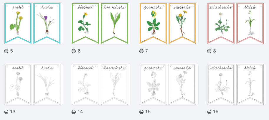 - 16 vlajek s barevnými obrázky