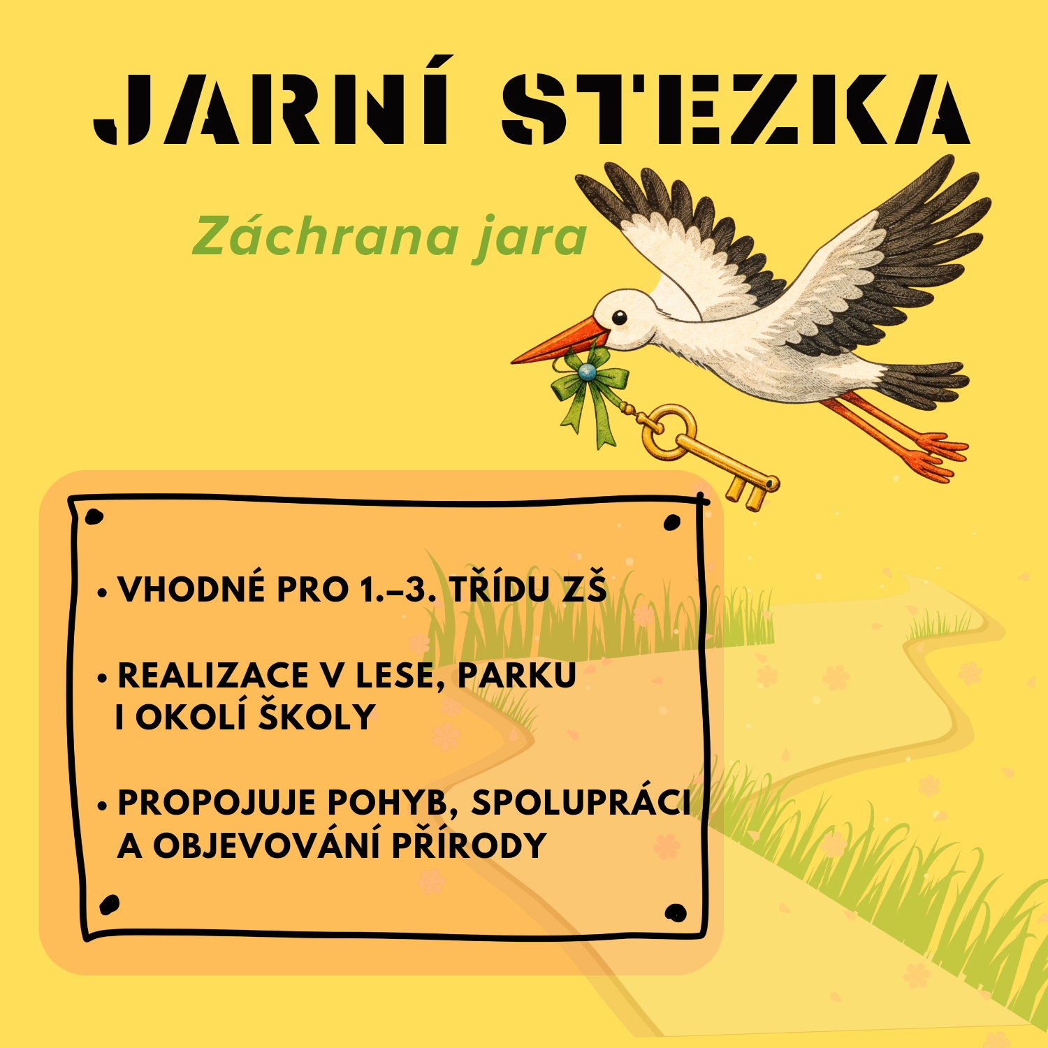 Jarní stezka „Záchrana jara“ je hravý venkovní program pro žáky 1. – 3. třídy základní školy, který propojuje pohyb, spolupráci, pozorování přírody i přemýšlení.