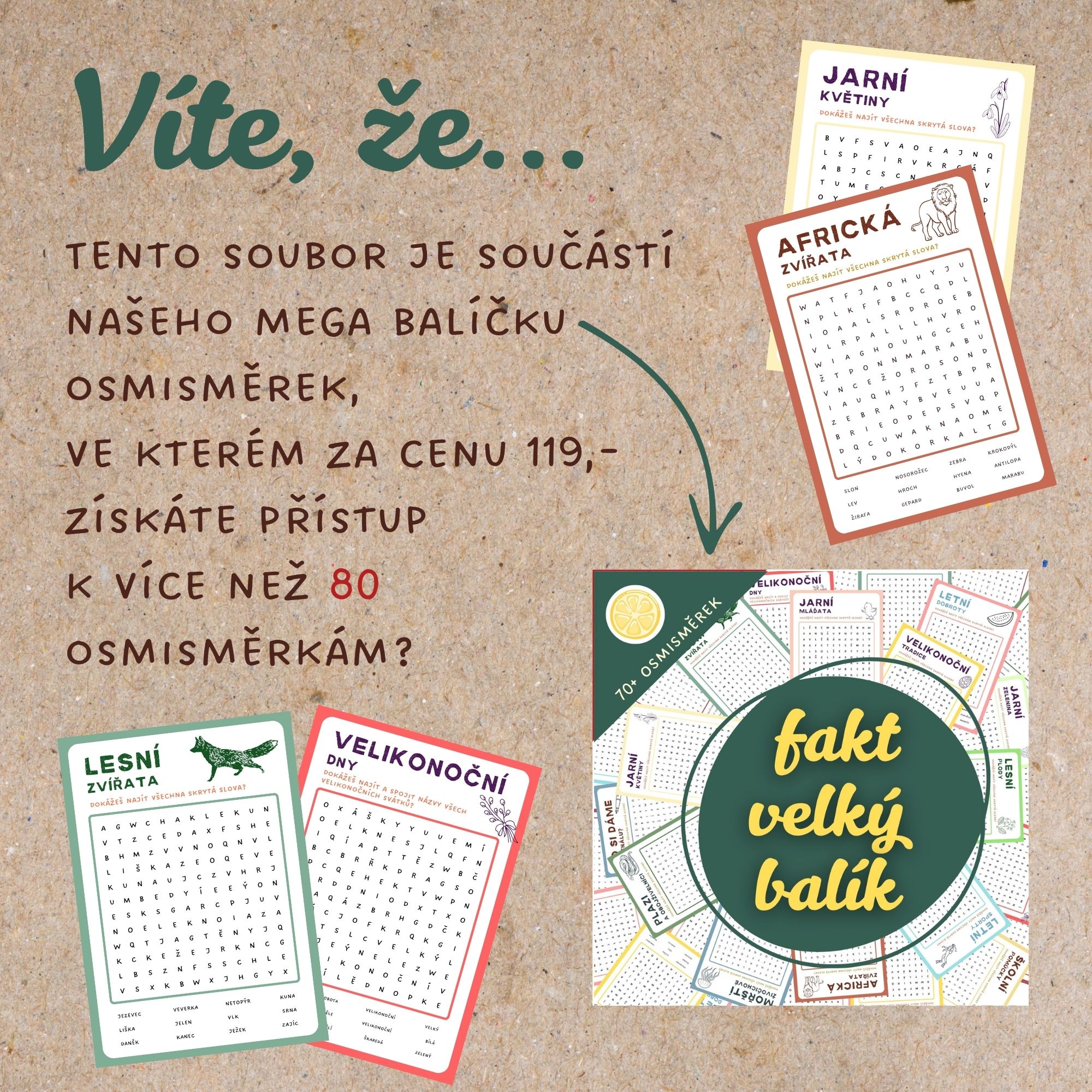 🌱Víte, že tato sada je součástí VÝHODNÉHO BALÍČKU, ve kterém najdete kompletní sbírku našich osmisměrek?