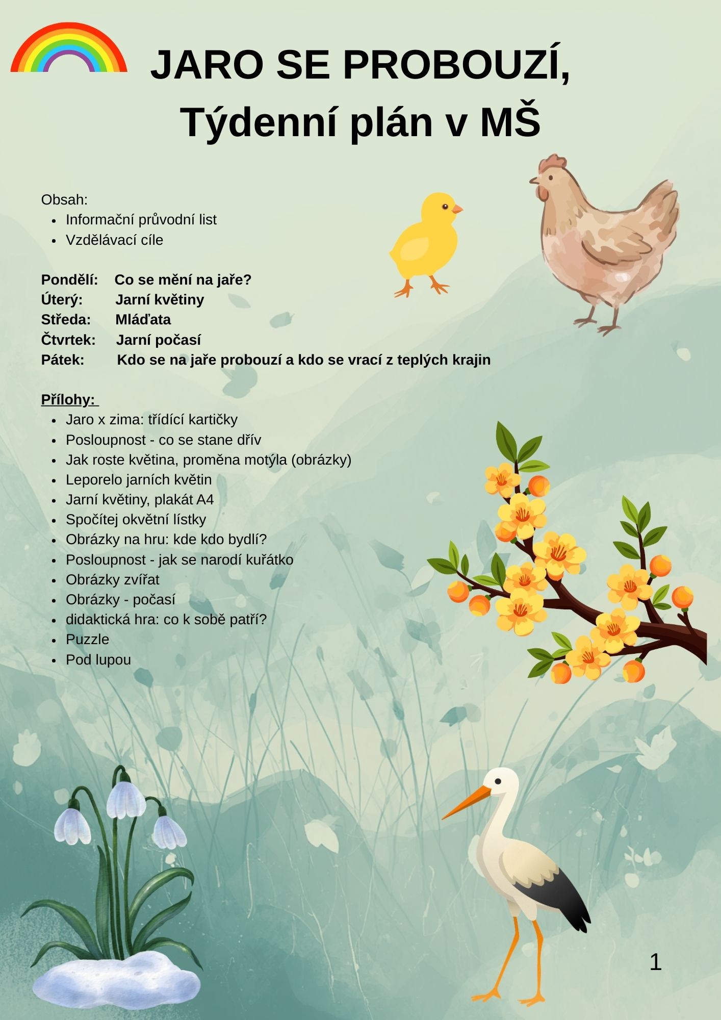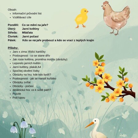 JARO SE PROBOUZÍ, TÝDENNÍ PLÁN V MŠ