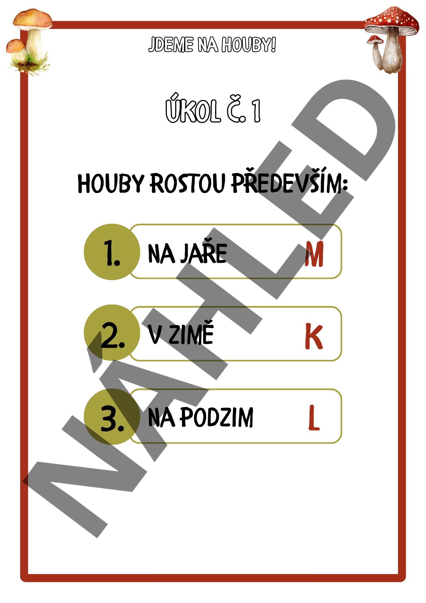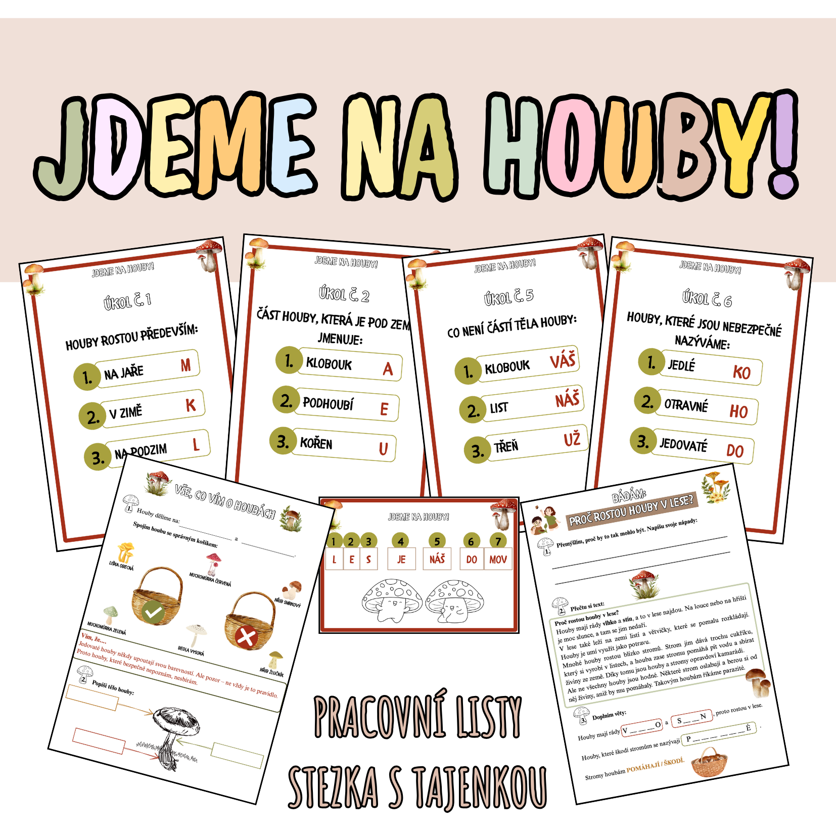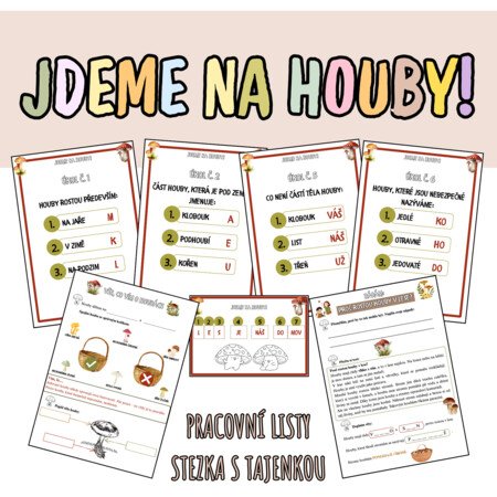 Materiál je určen pro děti mladšího školního věku. Slouží k procvičení a zopakování znalostí o houbách.