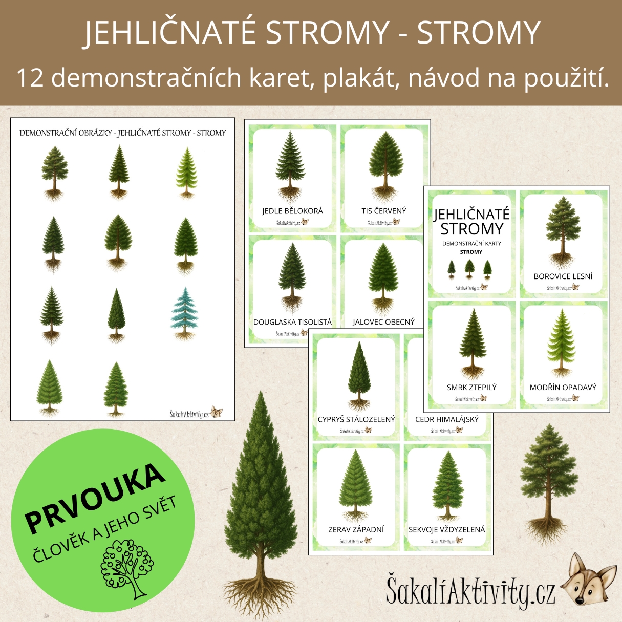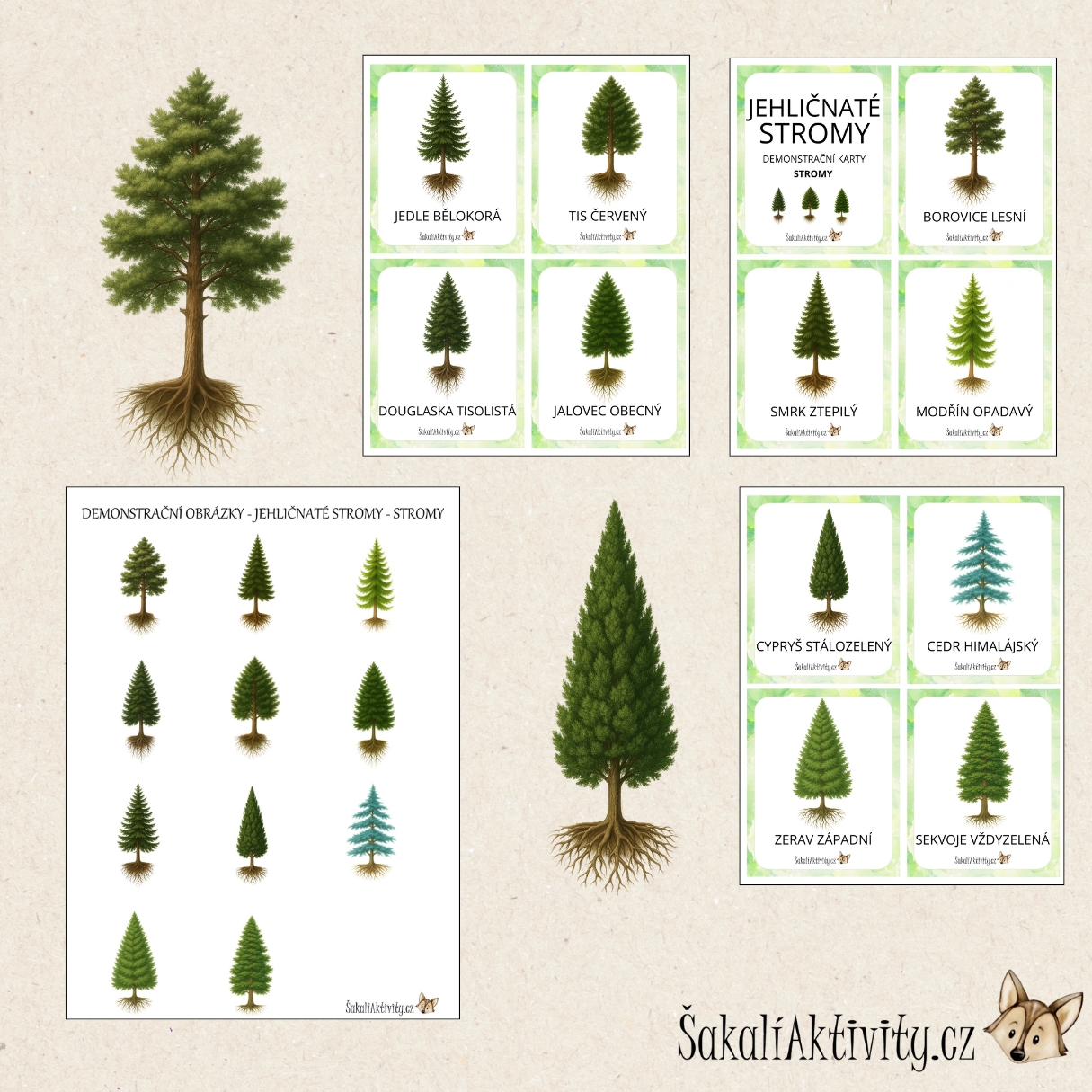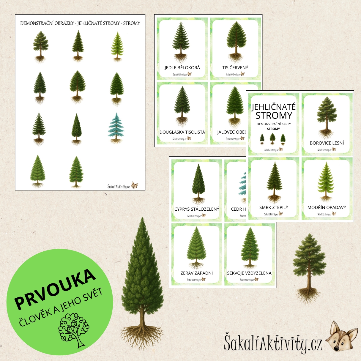 - Obsah: obrázky stromů s českými názvy