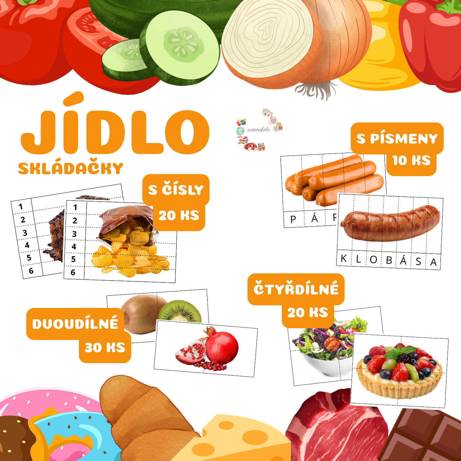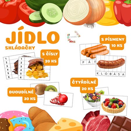 Soubor obsahuje celkem 80 skládaček s obrázky potravin.