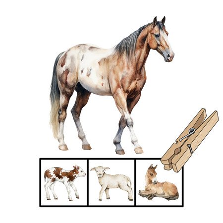 Aktivita Kolíčkování – hospodářská zvířata a jejich mláďata je zaměřena na nejmladší děti předškolního a raně školního věku. Pomocí jednoduchého a názorného úkolu děti přiřazují mláďata k dospělým zvířatům a připevňují kolíček na správný obrázek.