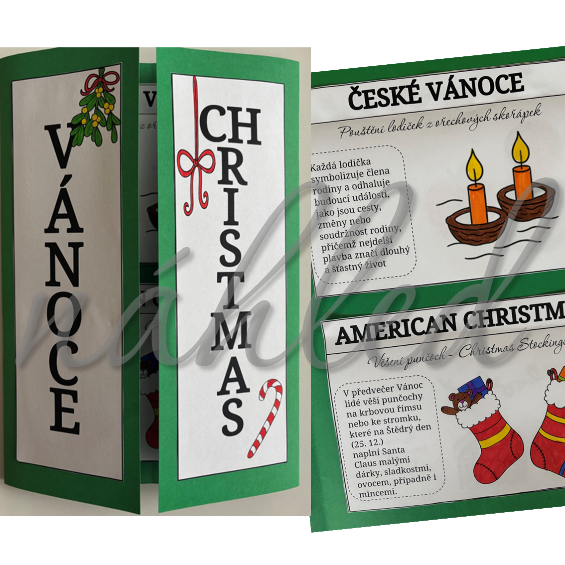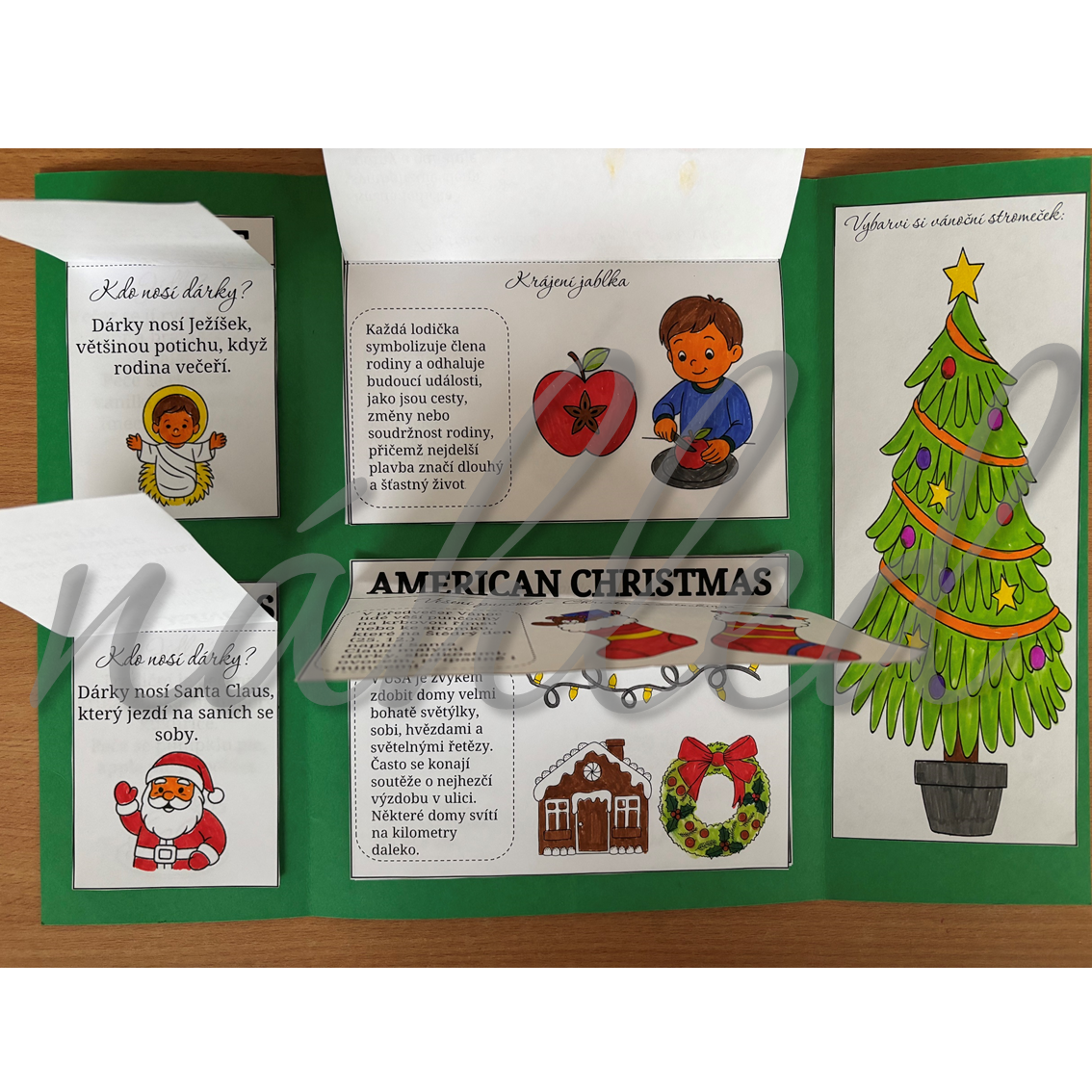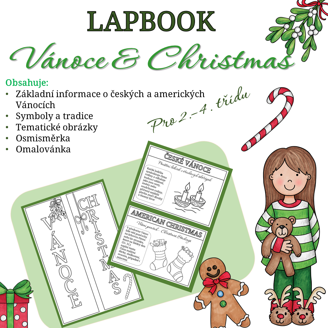 Tento kreativní a zábavný lapbook přibližuje dětem tradice českých i amerických Vánoc. Formou tvoření, hry a objevování se žáci seznámí s rozdíly mezi dvěma kulturami, procvičí si čtení s porozuměním, slovní zásobu i jemnou motoriku.