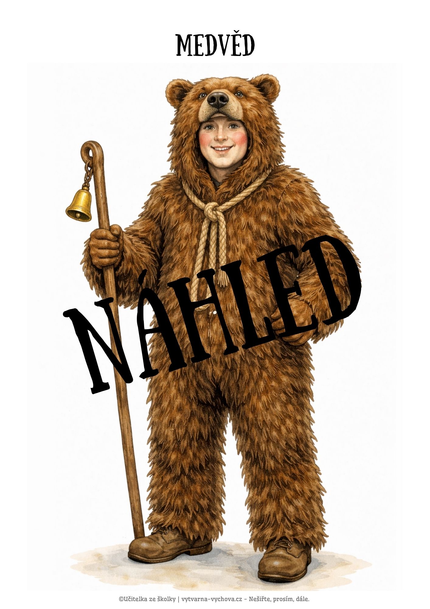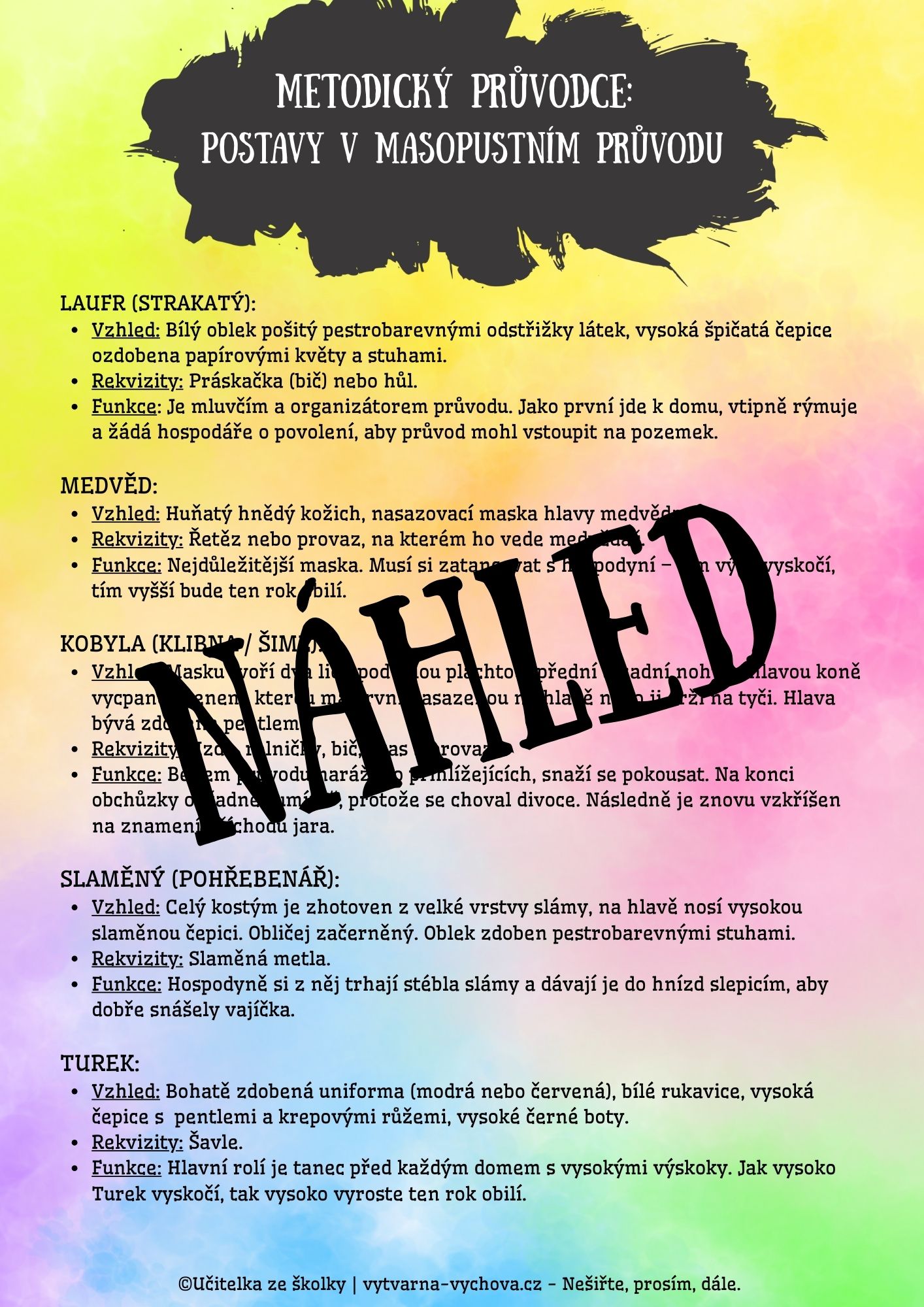 - Metodický průvodce (4 strany A4): Popis vzhledu a funkce každé postavy, kterou v průvodu zastává.