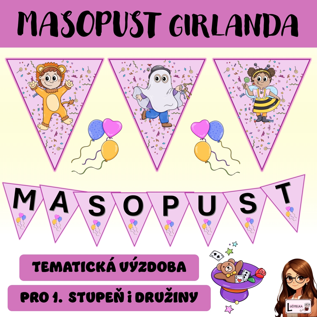 Cílem materiálu je vyzdobit si třídu tematicky na téma MASOPUST. Dále materiál rozvíjí fantazii a tvořivost.
