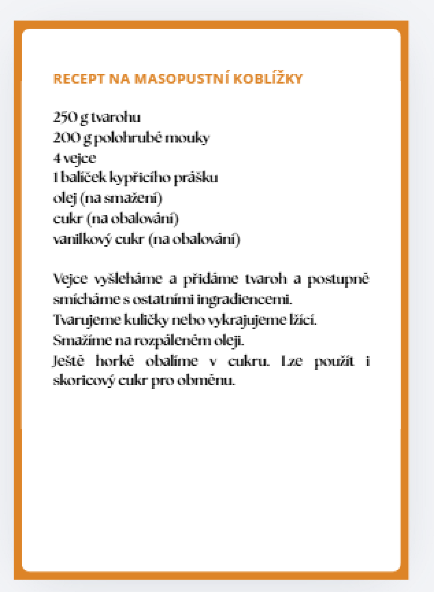 - společně podle receptu můžete usmažit masopustní koblížky, těsto není potřeba nechávat kynout