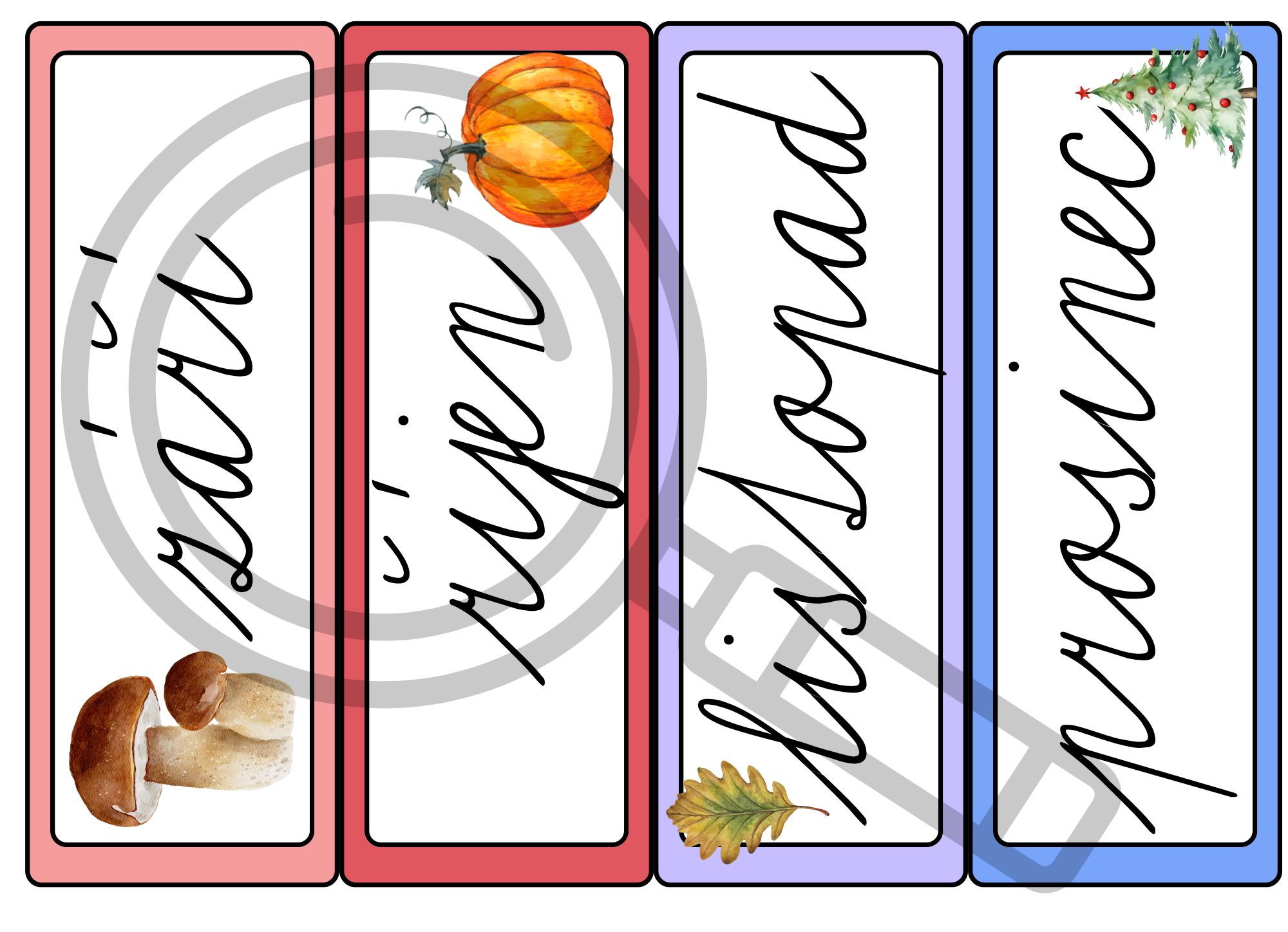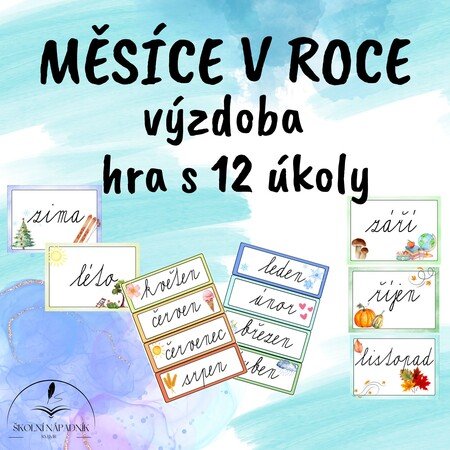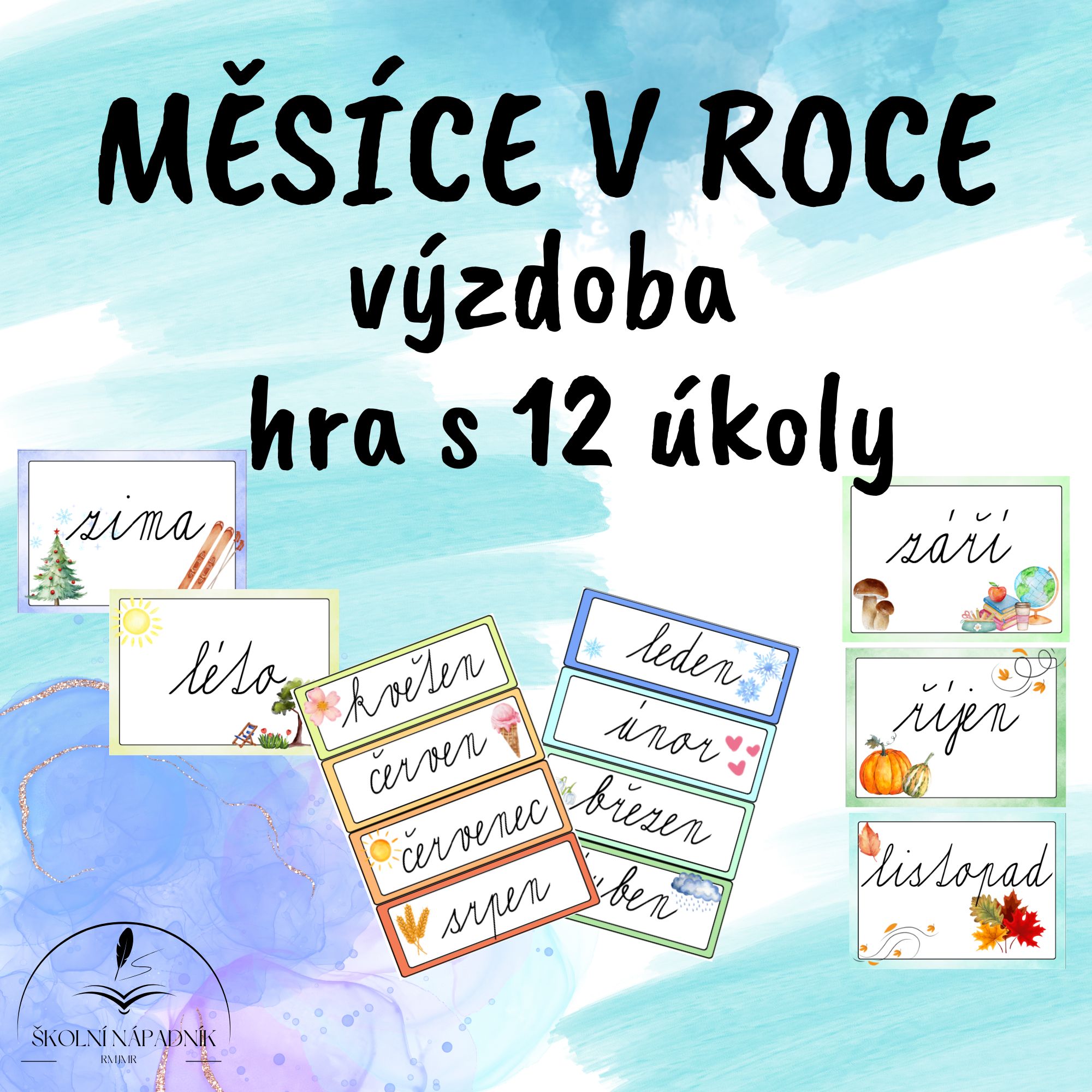 Karet s názvy ročních období a jednotlivých měsíců a hra s 12 úkoly.