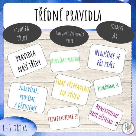 Soubor obsahuje 28 karet s anglickými pokyny, které se běžně využívají ve třídě. Karty je možné rozvěsit ve třídě či je