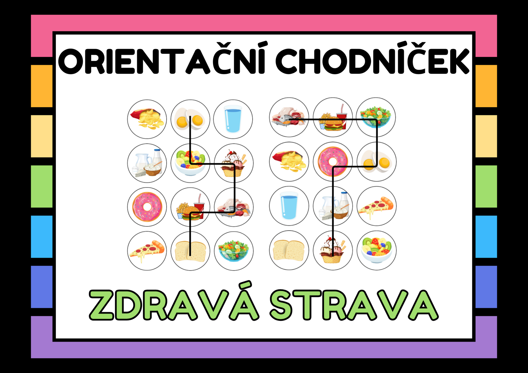 Zábavný venkovní nebo vnitřní orientační chodníček pro děti, který propojuje pohyb, poznávání a zdravou výživu.