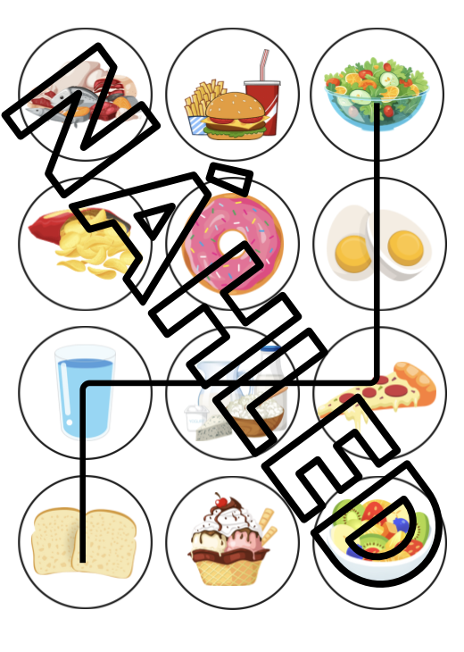 Děti s mapou v ruce putují po chodníčku s obrázky jídla, poznávají, které potraviny jsou zdravé a které ne.