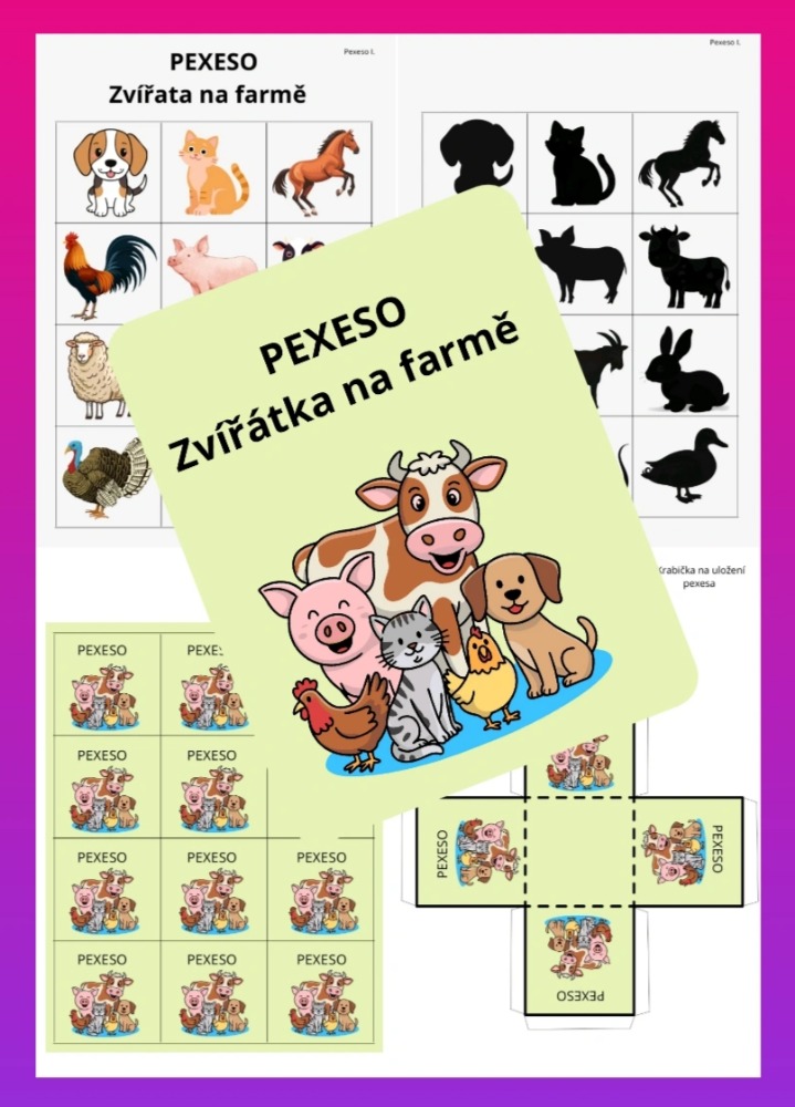 - str. 4 - pexeso (celkem 12 barevných obrázků zvířátek)