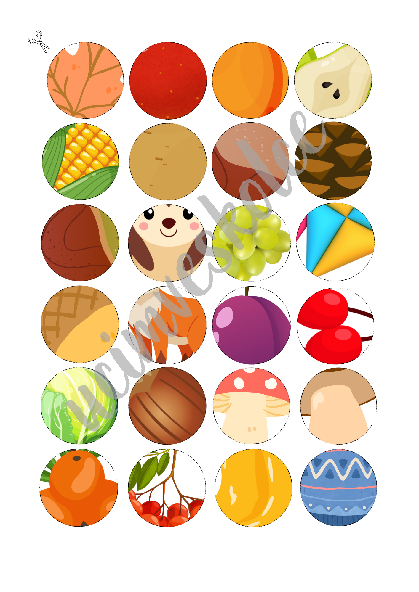Děti mají za úkol najít odpovídající kruhovou kartičku a položit ji na prázdné místo na kartičce s obrázkem.