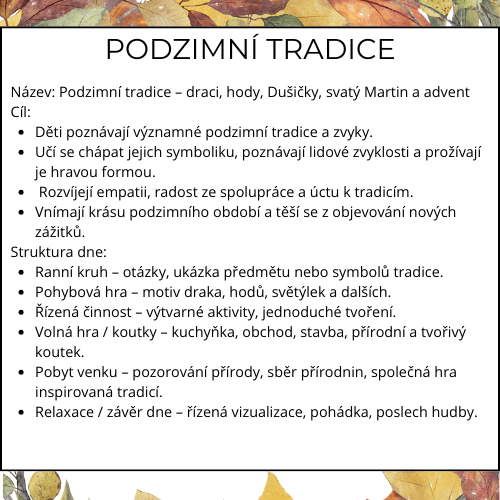 ✅ Ideální pro podzimní období – propojuje tradice, symboly, pohyb, tvoření i relaxaci.