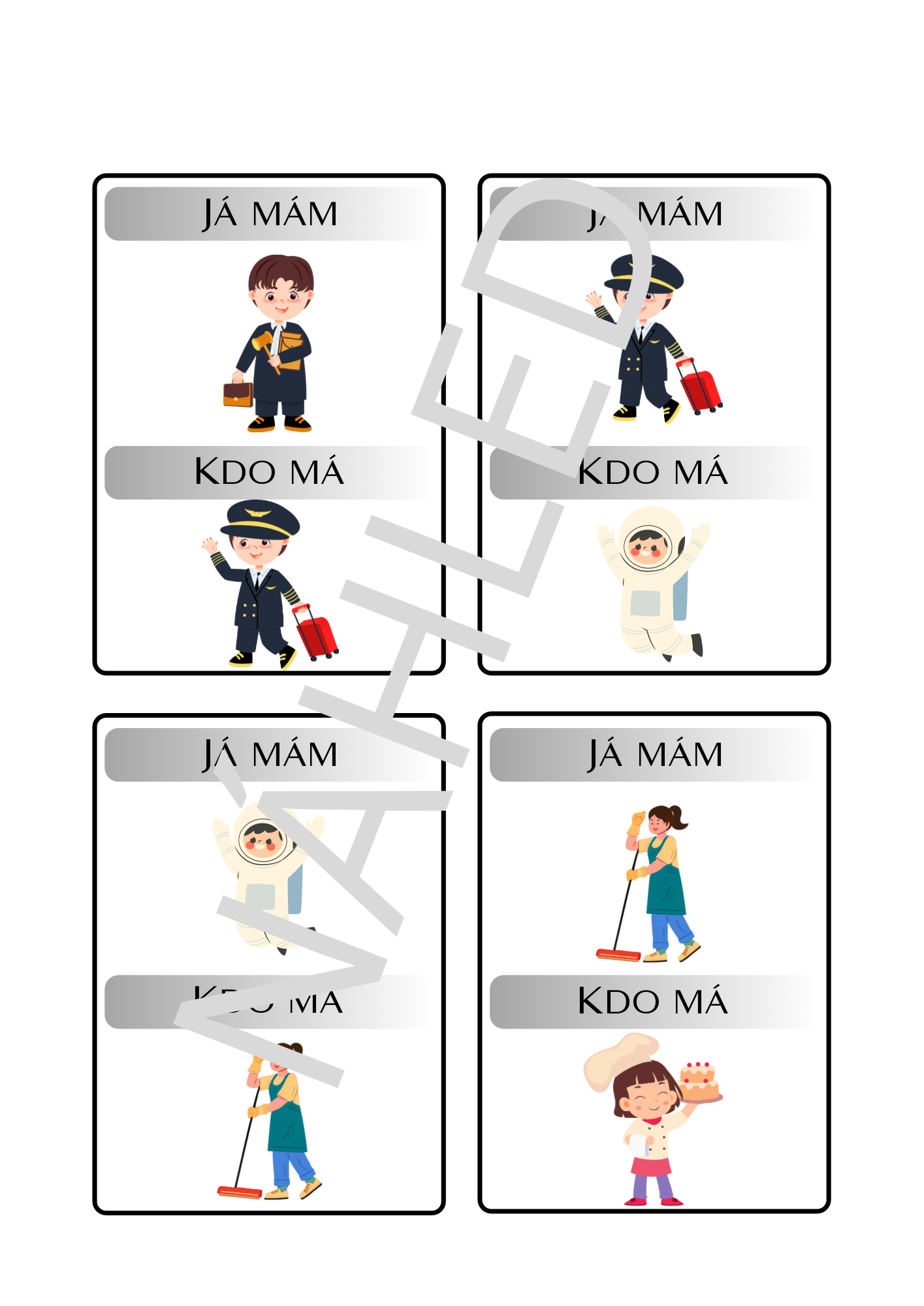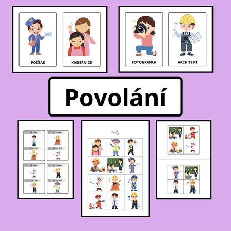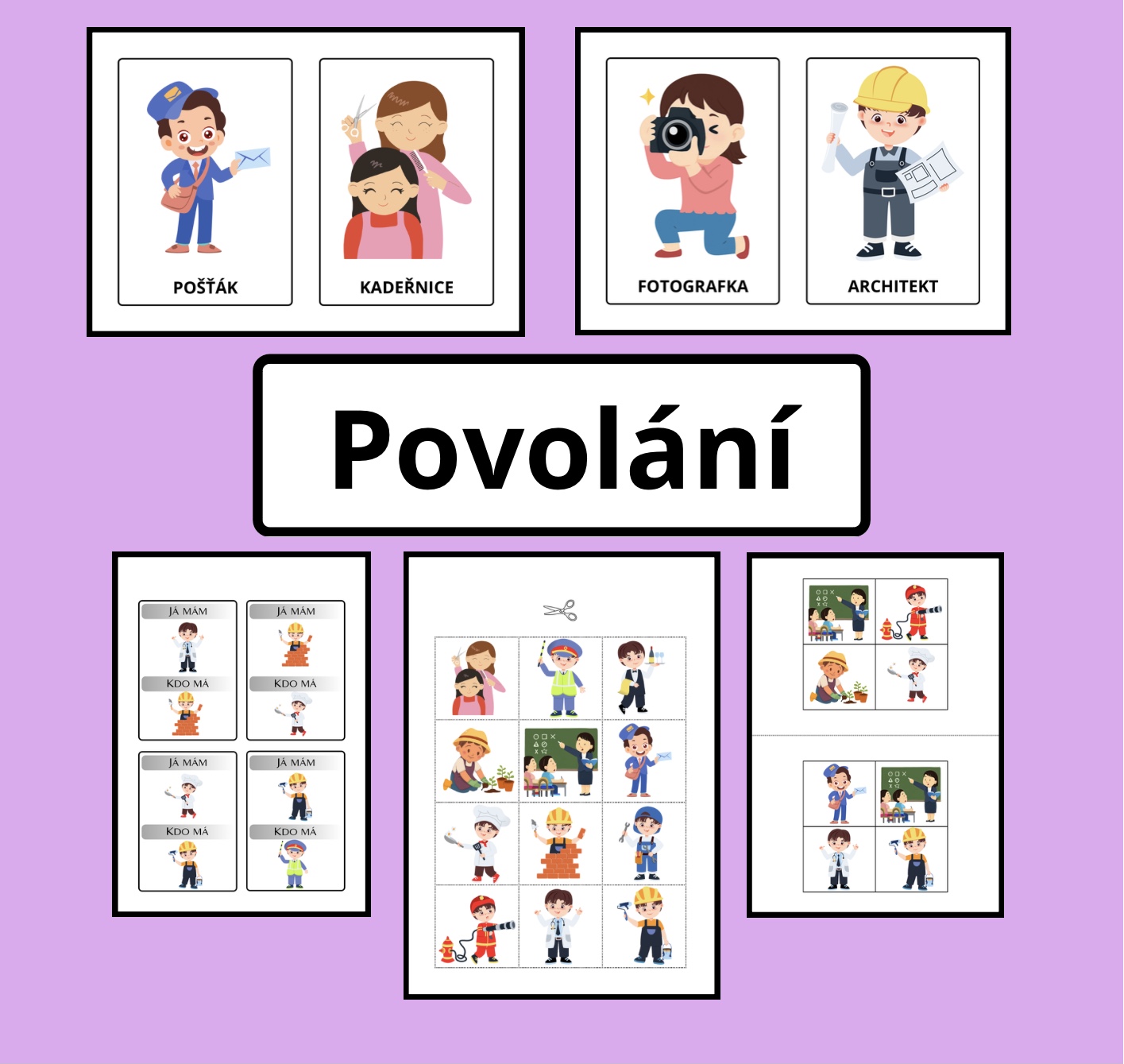 Soubor obsahuje 28 demonstračních obrázků, hru “Já mám, kdo má?” a hru BINGO pro nejmenší na téma povolání.