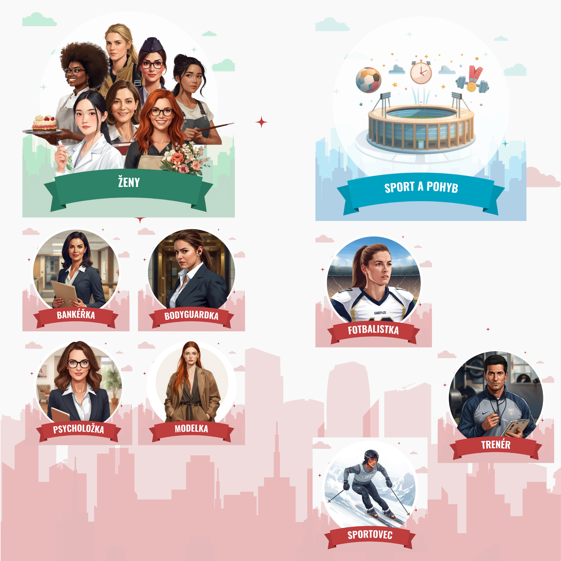 🗂️ 10 třídicích okruhů – celkem 35 karet kategorií, podle kterých lze povolání rozdělovat