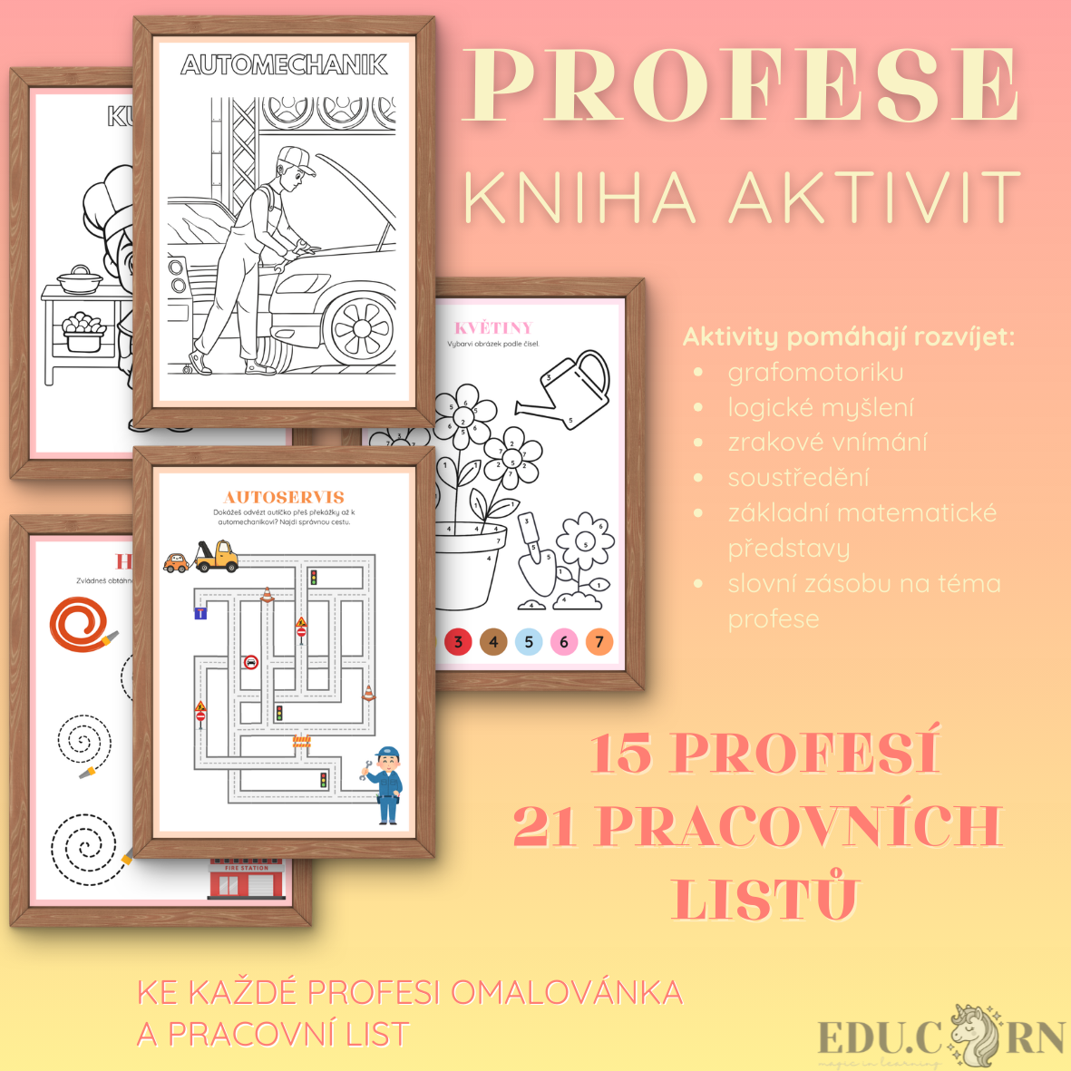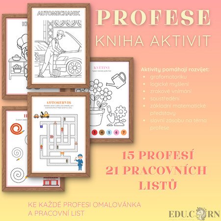 Soubor aktivit zaměřený na poznávání různých profesí hravou formou. Děti se seznámí s povoláními, která mohou potkat v běžném životě, a zároveň si procvičí jemnou motoriku, logické myšlení i pozornost.