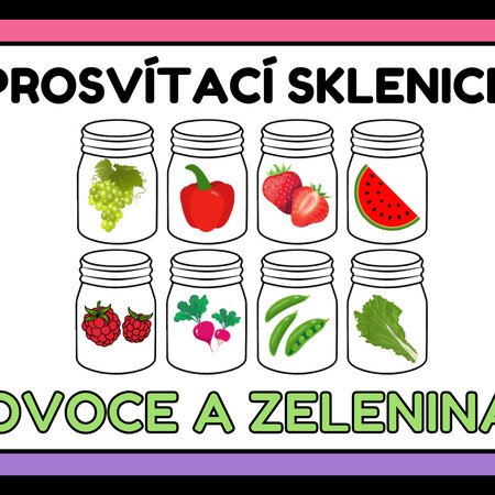 Materiál obsahuje: průhledné sklenice a obrázky ovoce a zeleniny