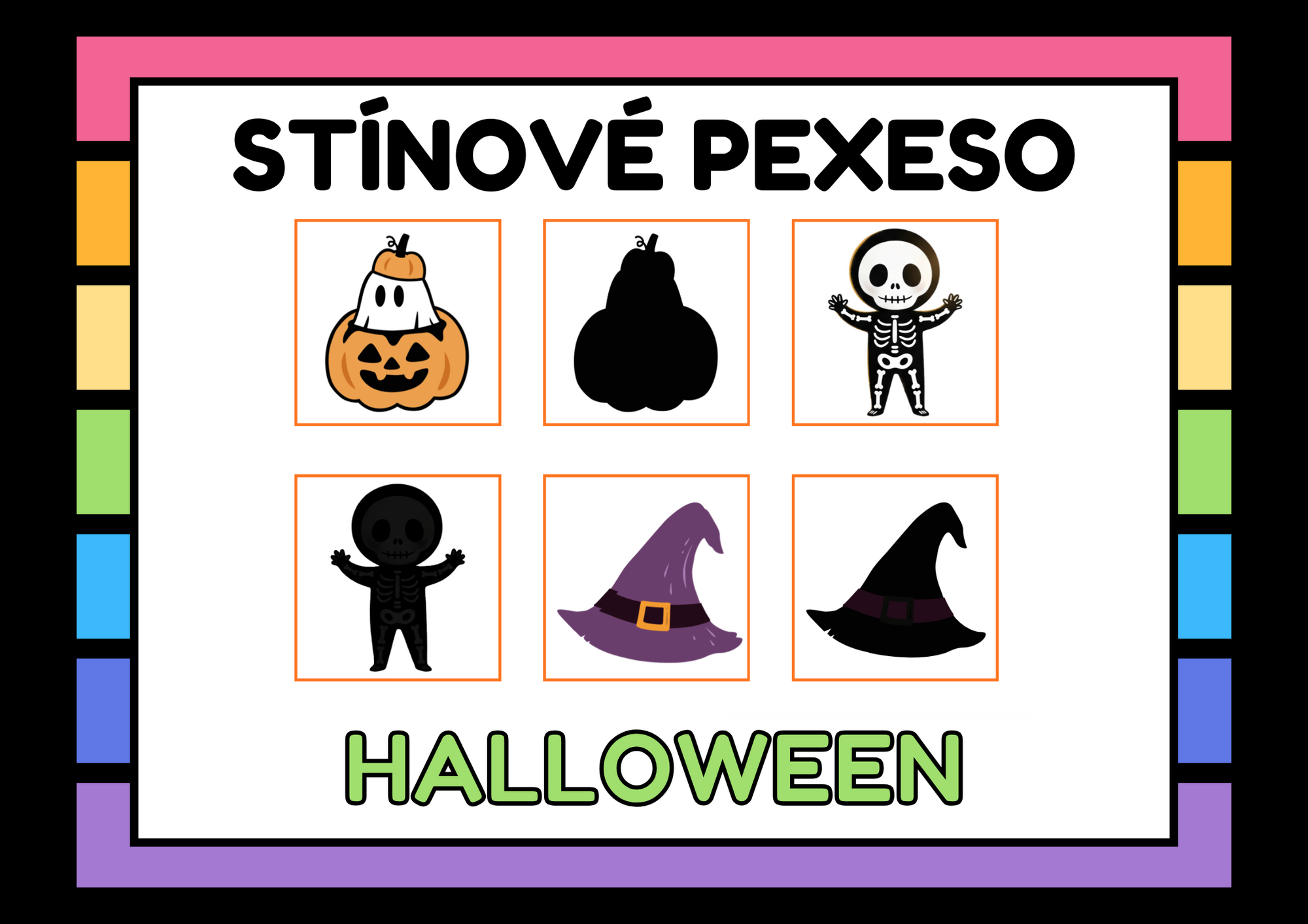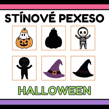 Didaktická hra pro děti, která zaměřená na téma Halloweenu. Děti hledají shodné dvojice obrázku a jeho stínu.