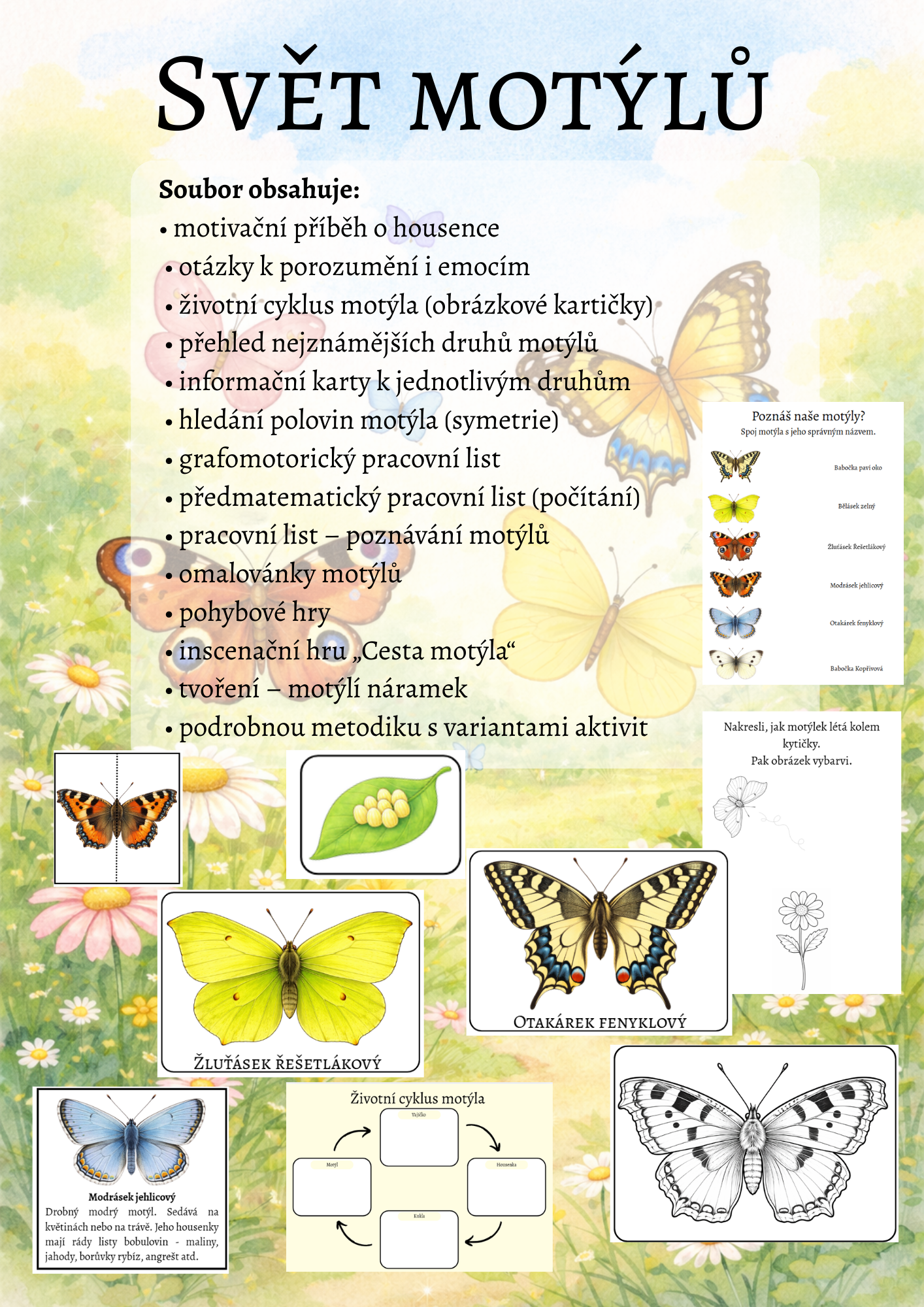 Vydejte se s dětmi na jarní louku plnou barev, proměn a objevování. Prostřednictvím příběhu, her, pohybu i tvoření děti poznají životní cyklus motýla a zažijí jeho proměnu na vlastní kůži.