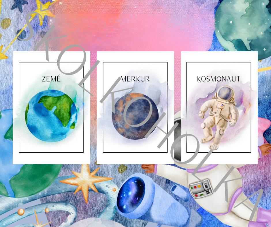 🪐 Třísložkové karty: Ucelená sada karet pro rozvoj slovní zásoby , poznávání a třídění vesmírných prvků. 🌠
