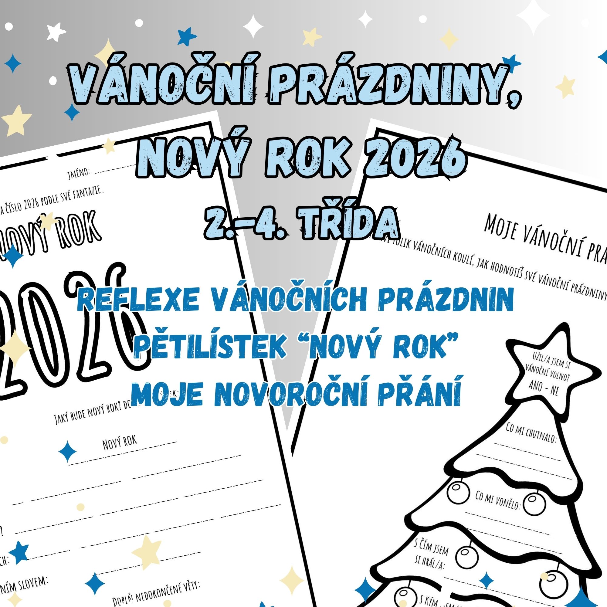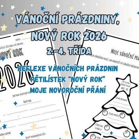 Materiál obsahuje pracovní list k reflexi vánočních prázdnin, pracovní list s pětilístkem k novému roku a list k zápisu svých novoročních přání.