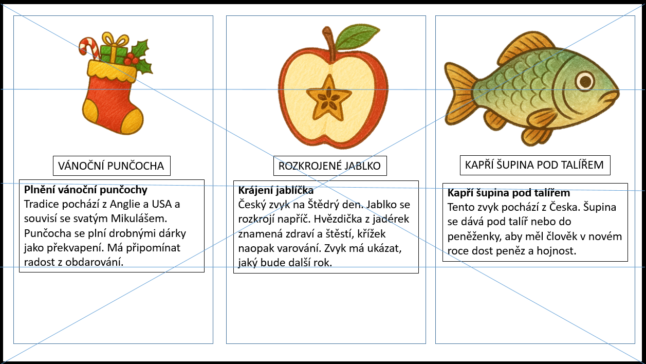 - 15 kartiček s vánočními tradicemi