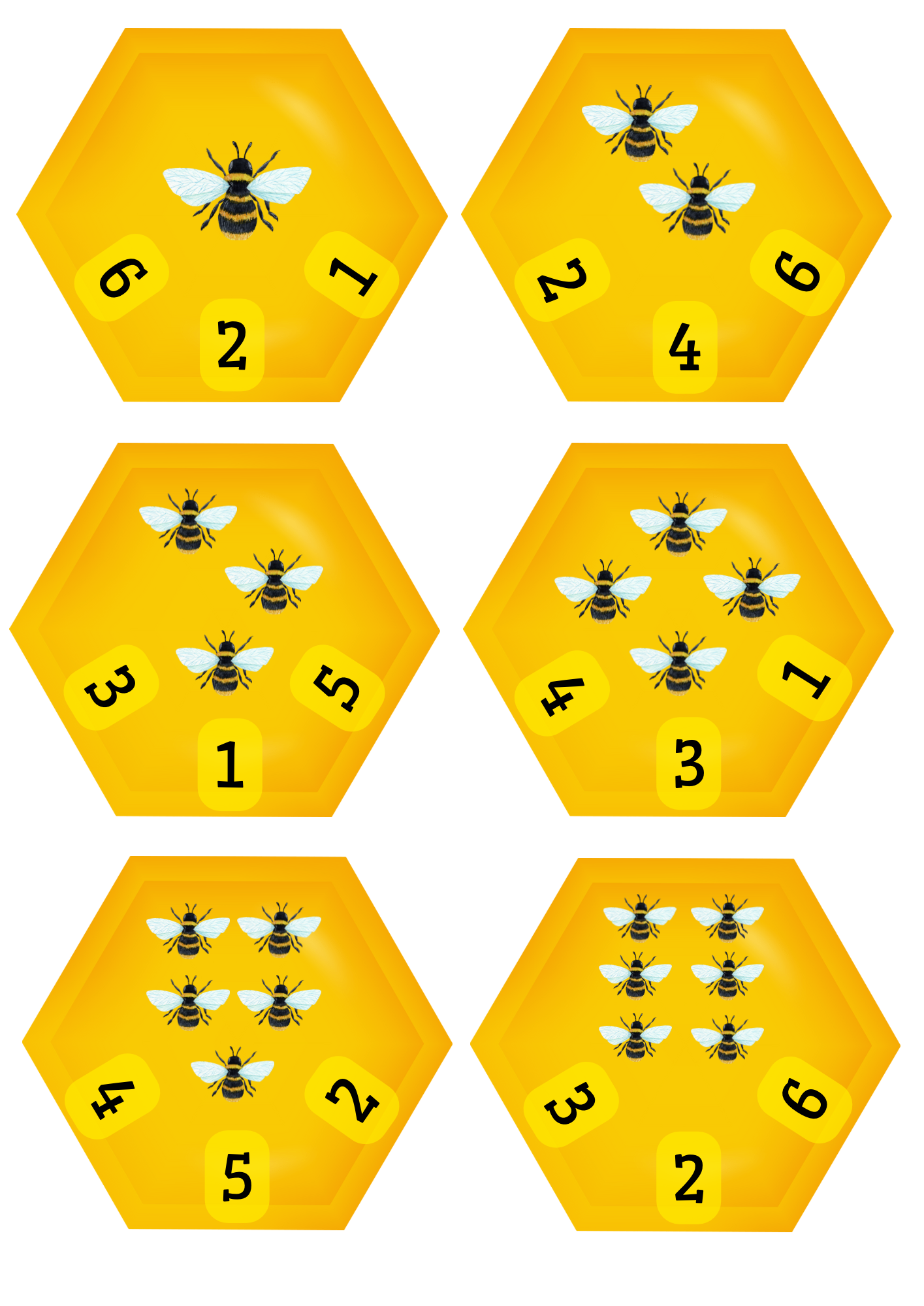 Počítáme včeličky - vyjádření počtu včeliček do 6 - 6 karet
