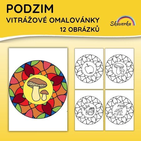 - 12 omalovánek s podzimními motivy – listy, zvířátka v lese, déšť, houby, dýně, draci