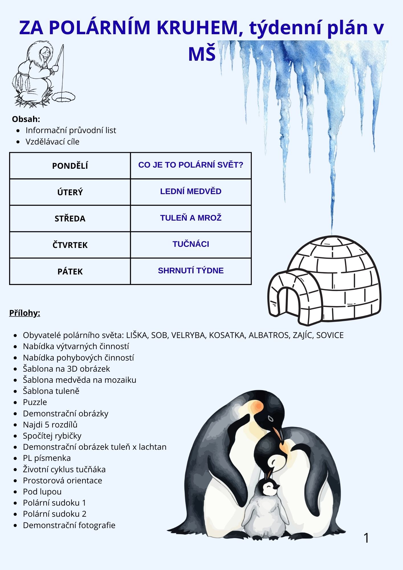 ZA POLÁRNÍM KRUHEM, týdenní plán v MŠ