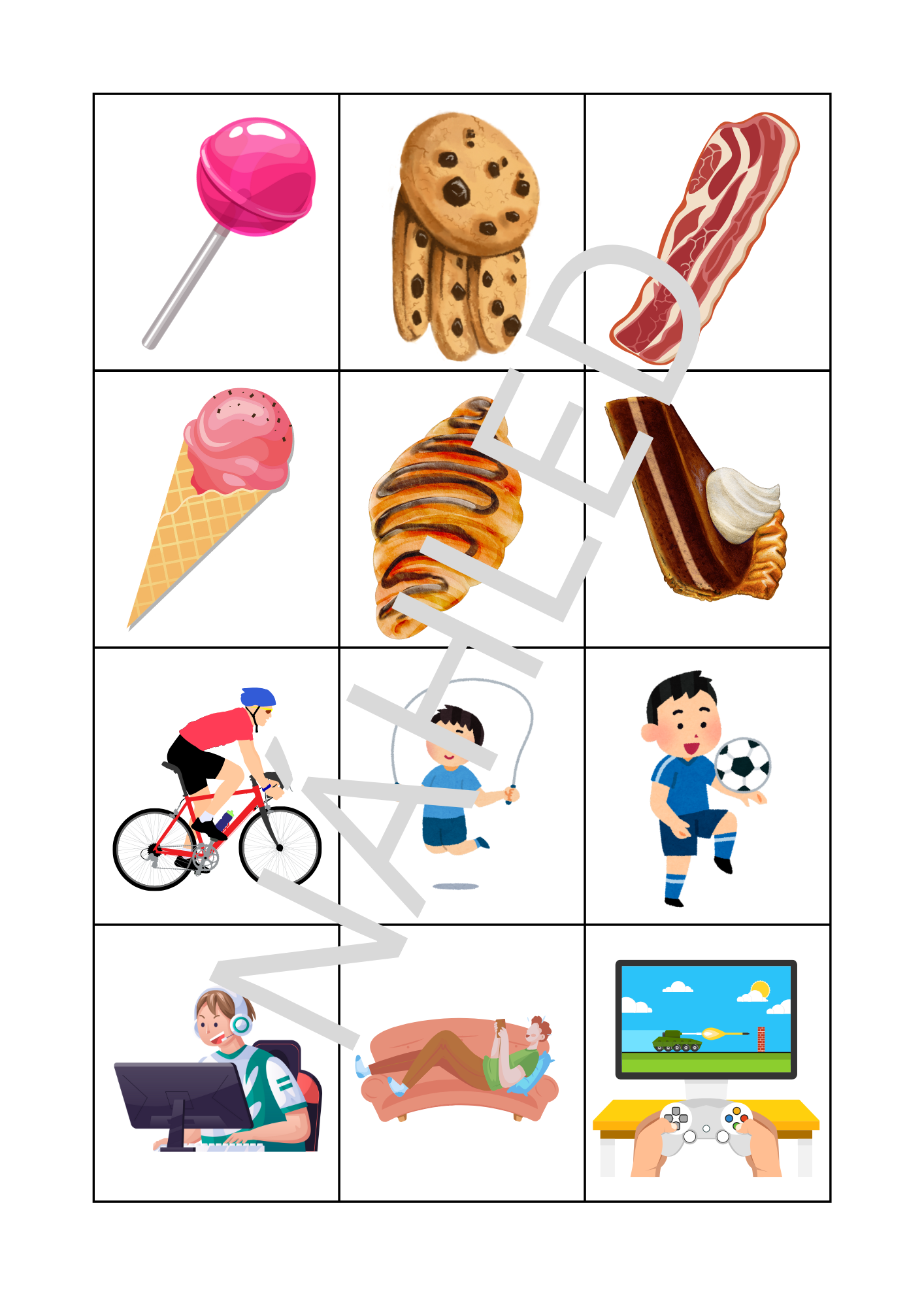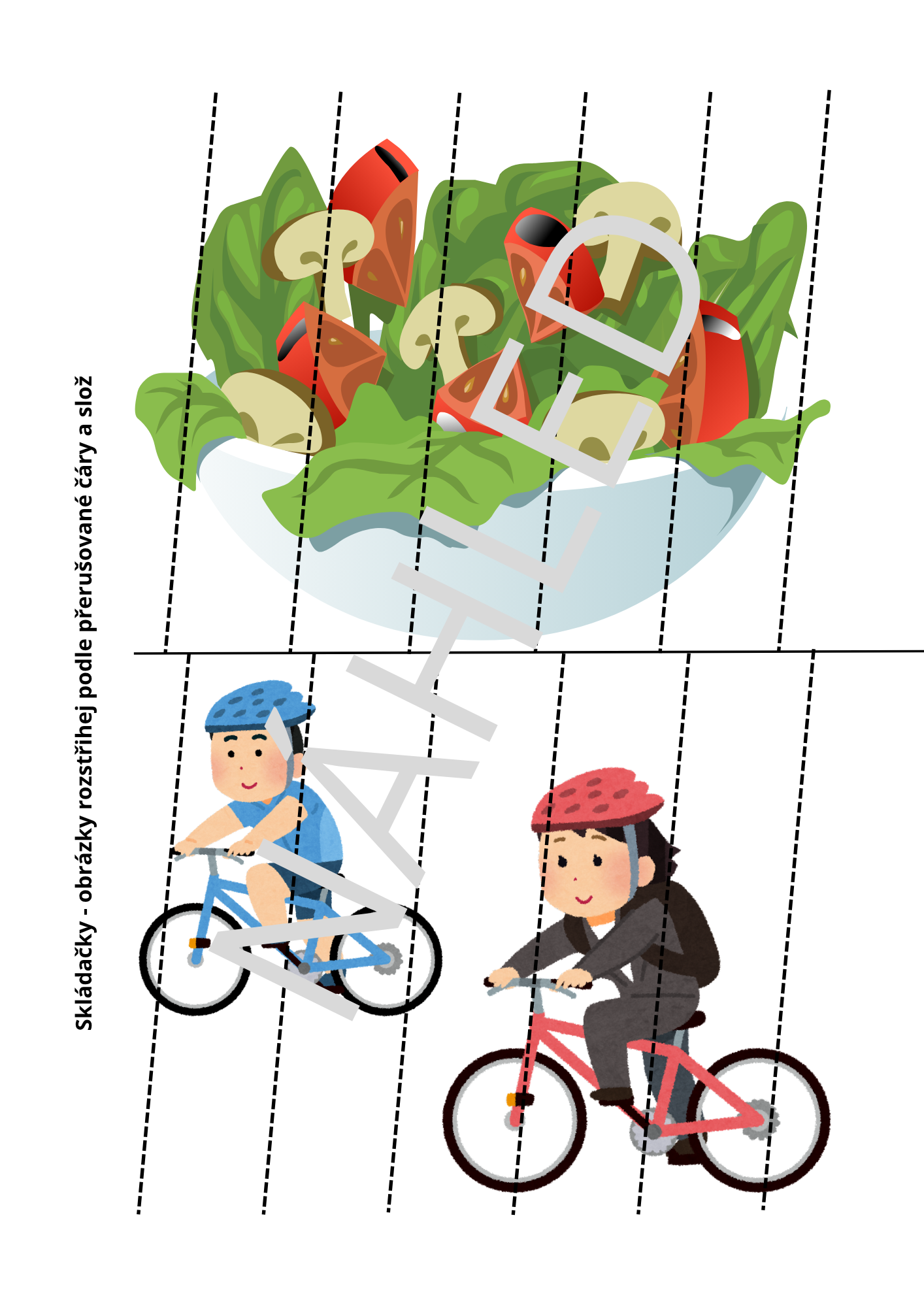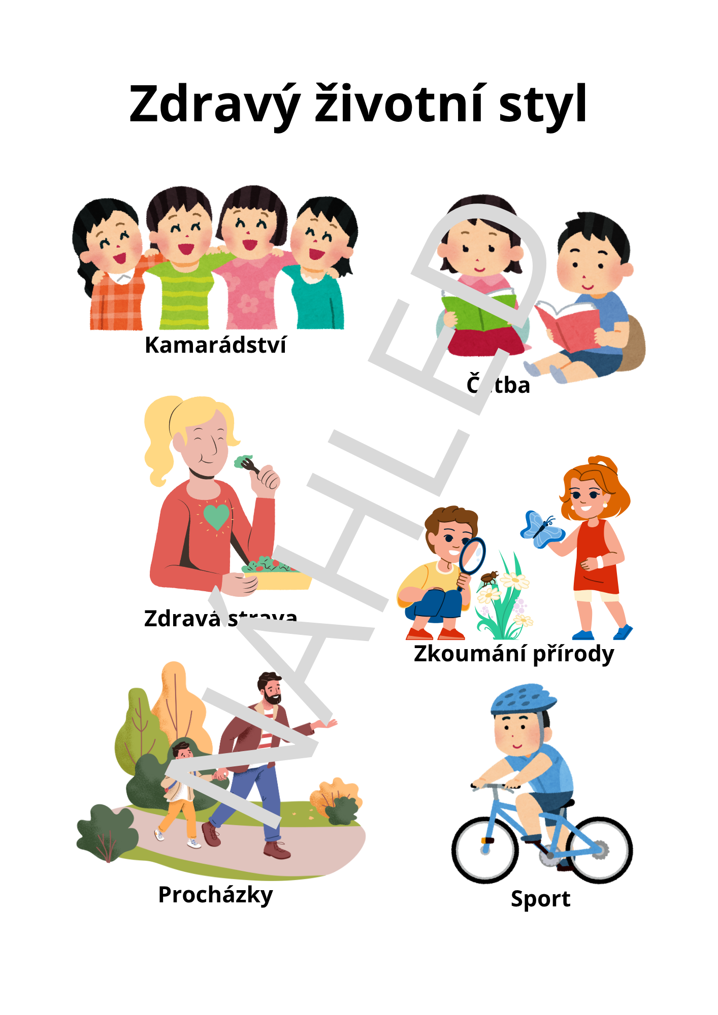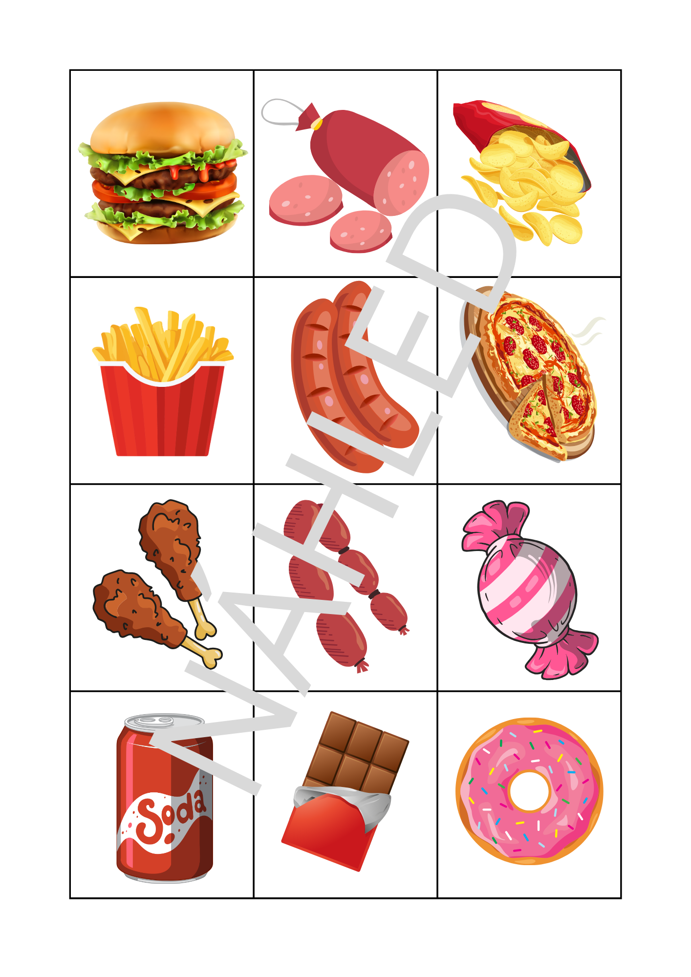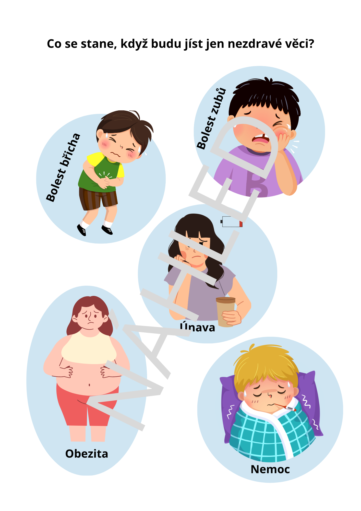 Soubor obsahuje: 2x plakát, smutného a veselého smajlíka a 48 kartiček s obrázky zdravých a nezdravých potravin určených k roztřídění, bludiště, rozdíly a 2x skládačku