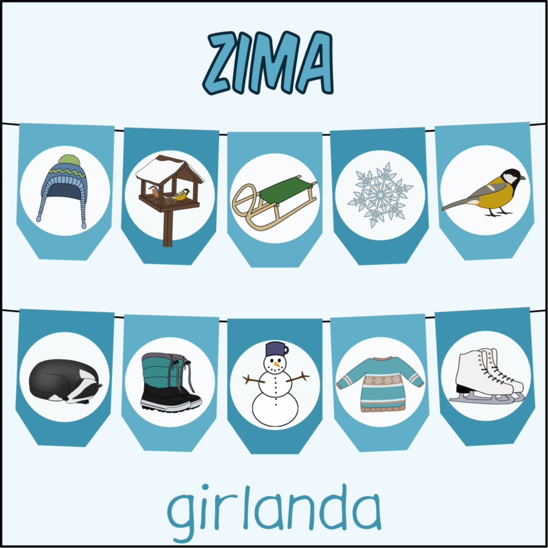 Soubor obsahuje 25 vlaječek formátu A4, na nichž najdete ilustrace se zimními motivy.