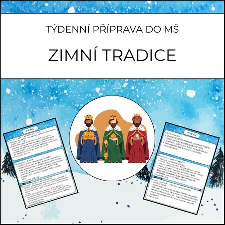 Když se brzy stmívá, na parapetu čeká Barborčina větvička a třídou cinkne rolnička, přichází čas zimních tradic. Děti si je bezpečně a srozumitelně vyzkouší – od Barborek a Mikuláše přes Lucii a advent až po Nový rok a Tři krále. Digitální materiál „Zimní tradice“ přináší ucelený týden aktivit: jasné ranní kruhy, přehledné běhačky pro velkou třídu, hezké výrobky, jednoduchý pobyt venku i klidné závěry dne bez zbytečných tisků navíc.