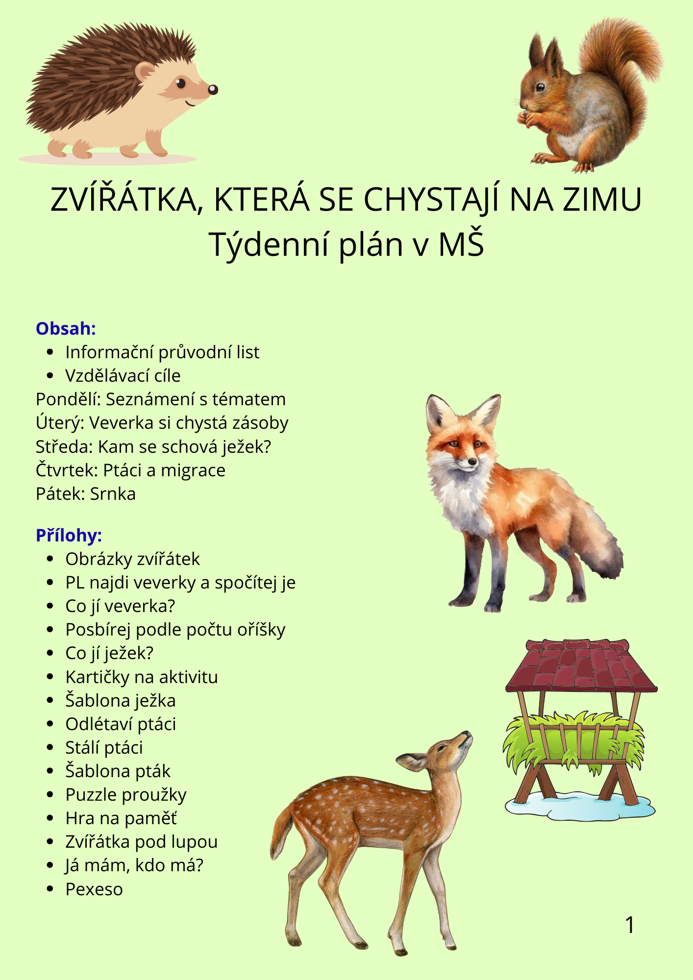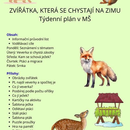 Zvířátka se chystají na zimu - týdenní plán v MŠ