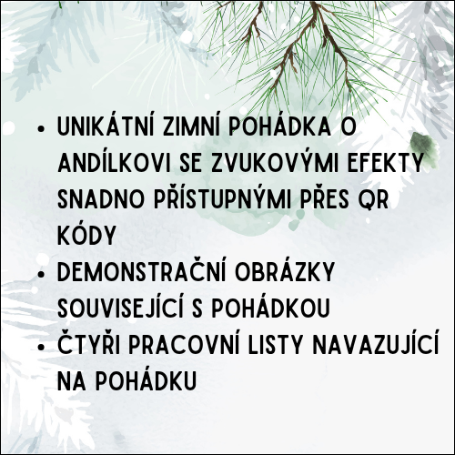 Tento PDF soubor obsahuje unikátní pohádku, která děti vtáhne nejen kouzelným příběhem, ale i autentickými zvukovými efekty – snadno přístupnými přes QR kódy! K tomu jsou v souboru také demonstrační obrázky s postavami z děje a na závěr 3 pracovní listy.