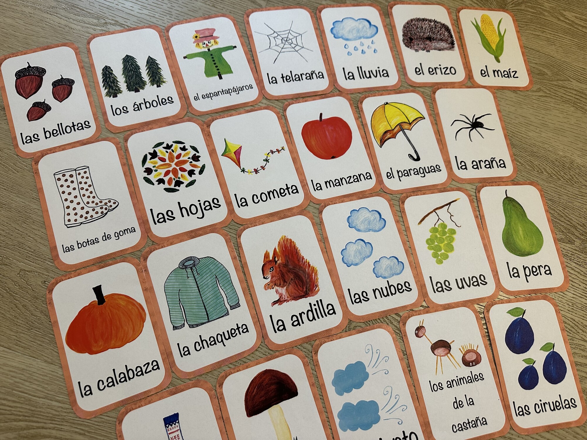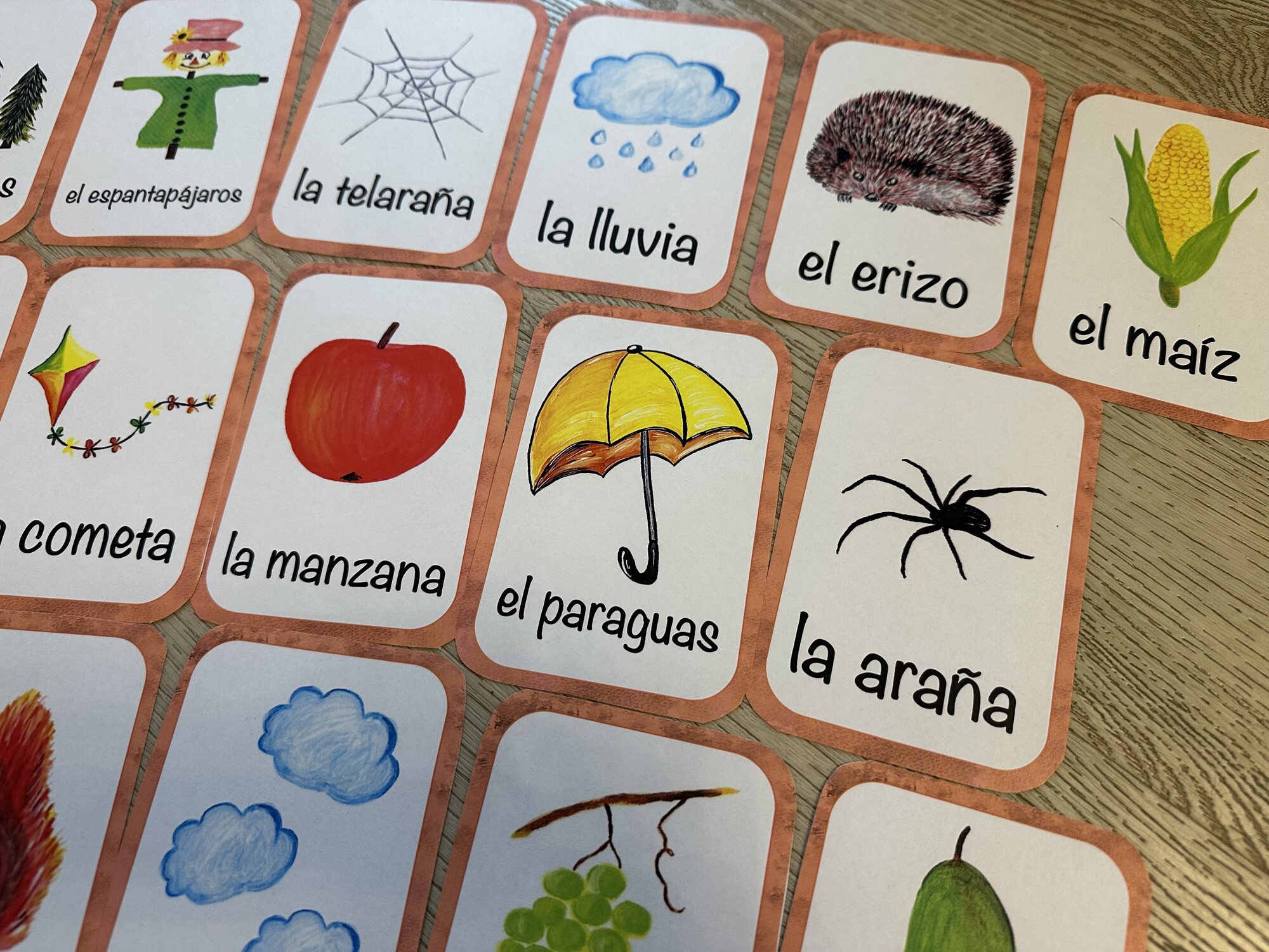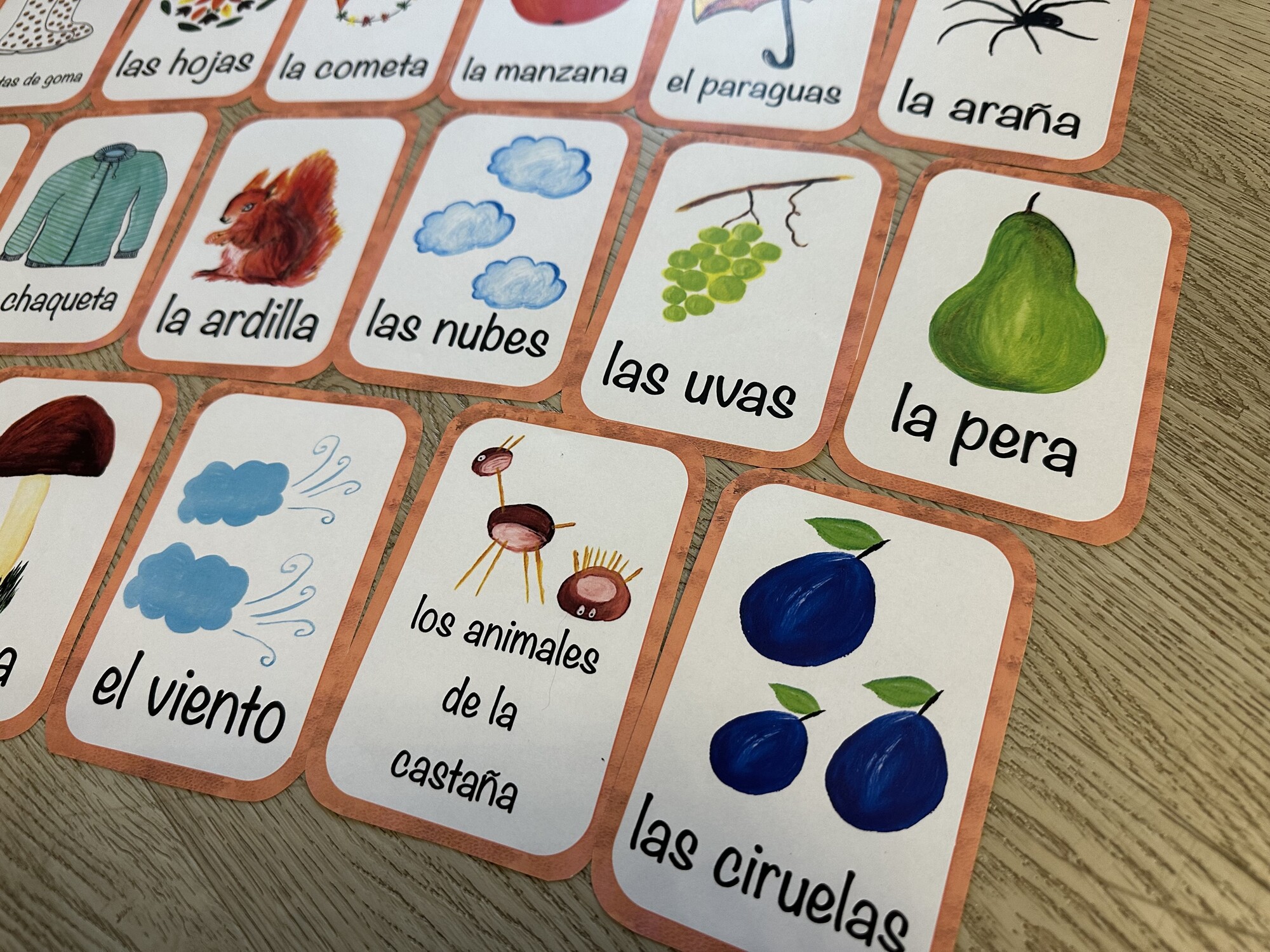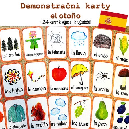 Materiál obsahuje 6 A4 stran – 24 karet velikosti A6. Materiál bude přínosný k výuce – povídání si o ročním období podzim nebo jako výzdoba třídy, pokoje. Děti si s kartami obohatí slovní zásobu. Můžete s dětmi karty třídit dle různých kritérií, hledat ke slovům rýmy, popisovat atd.