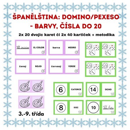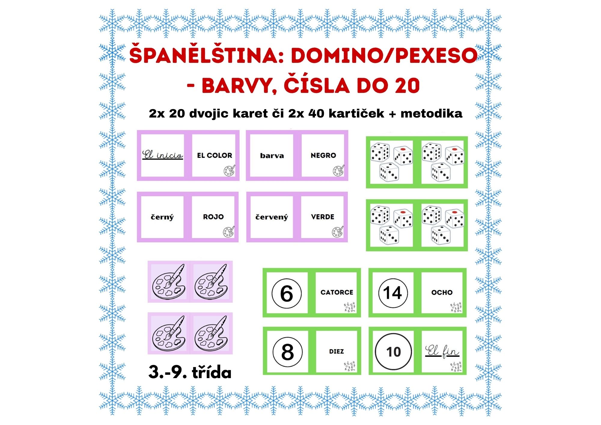 V souboru najdete 2 x 20 dvojic karet nebo 2 x 40 jednotlivých kartiček na téma barvy a čísla do 20 Materiál obsahuje i rozšířenou slovní zásobu u barev - tyrkysová, bronz apod. V souboru také naleznete metodická doporučení a další obměny těchto her.