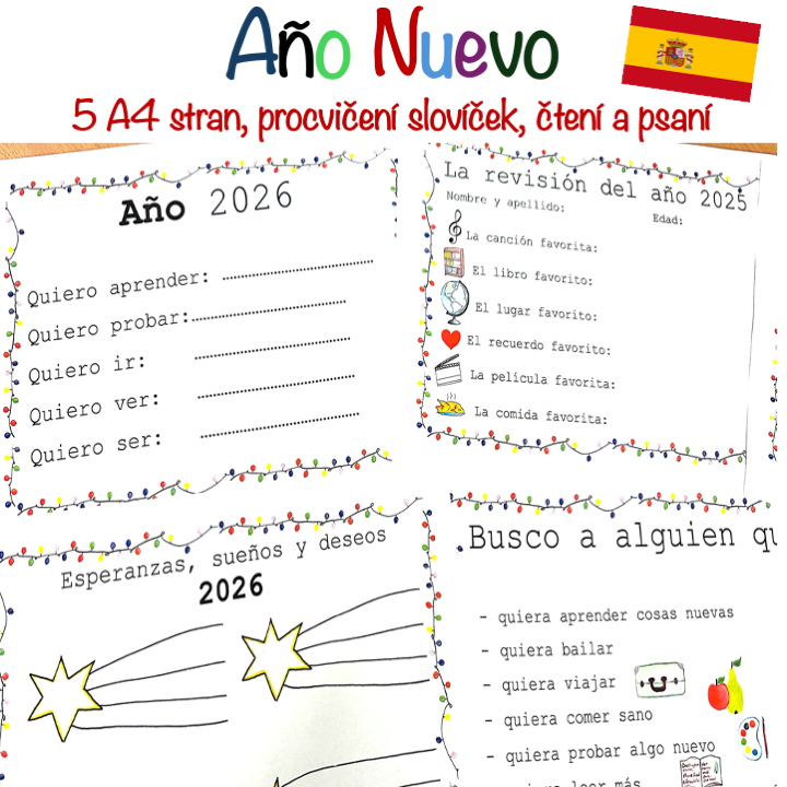 Materiál se skládá z 5 A4 stran. Děti si zavzpomínají, jaké zážitky během roku prožily, napíší své přání a plány pro rok 2026. Své odpovědi mohou srovnat se spolužáky, vést společně diskuzi. Materiál je dostupný i anglicky a česky.