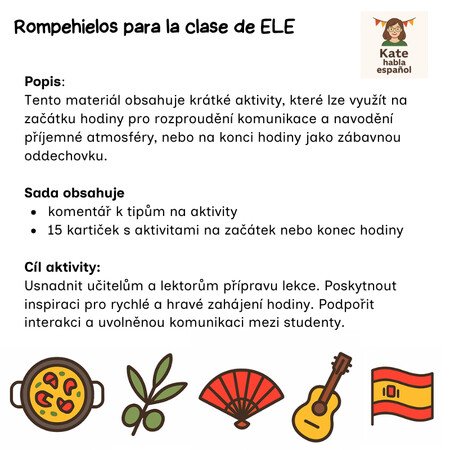 Tento materiál obsahuje krátké aktivity, které lze využít na začátku hodiny pro rozproudění komunikace a navodění příjemné atmosféry, nebo na konci hodiny jako zábavnou oddechovku.
