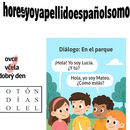 Pracovní list obsahuje jako úvodní seznámení s jazykem úvodní slovní zásobu a pozdravy formou kartiček. Součástí je