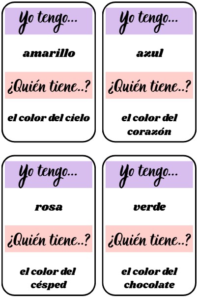 Hra "Yo tengo, quién tiene" je ve dvou verzích: