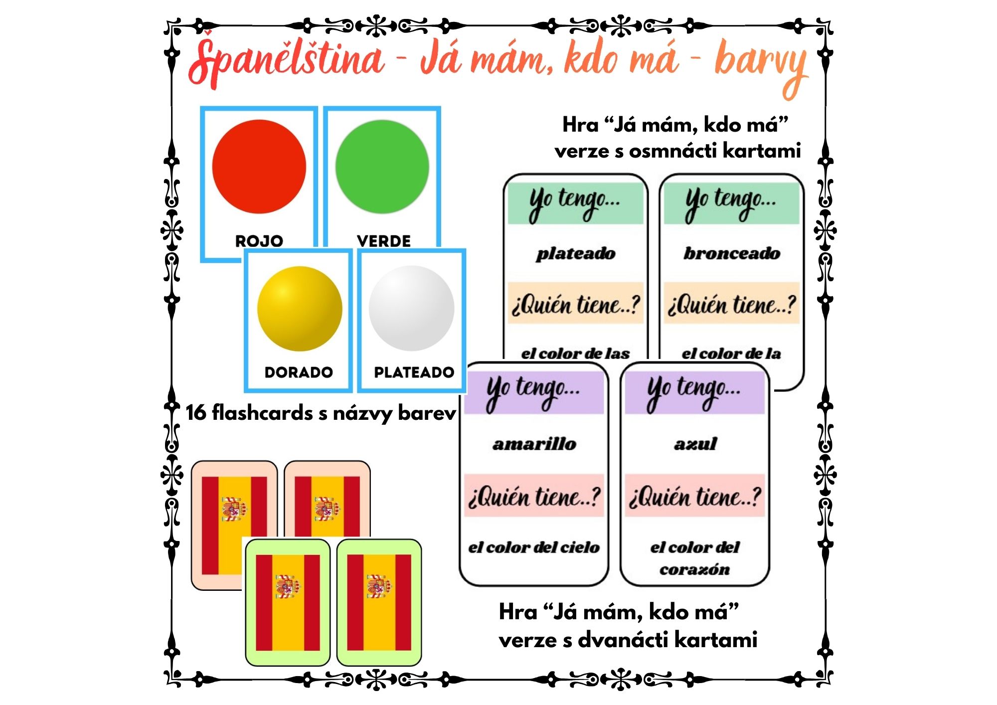 Materiál obsahuje celkem 16 demonstračních karet velikosti A5 k vytištění a dvě verze hry "Já mám, kdo má" ve španělštině - "Yo tengo, quién tiene".
