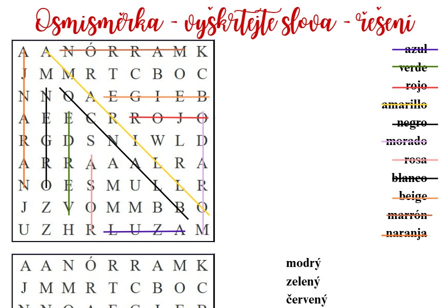 🎨3 strany osmisměrky + řešení