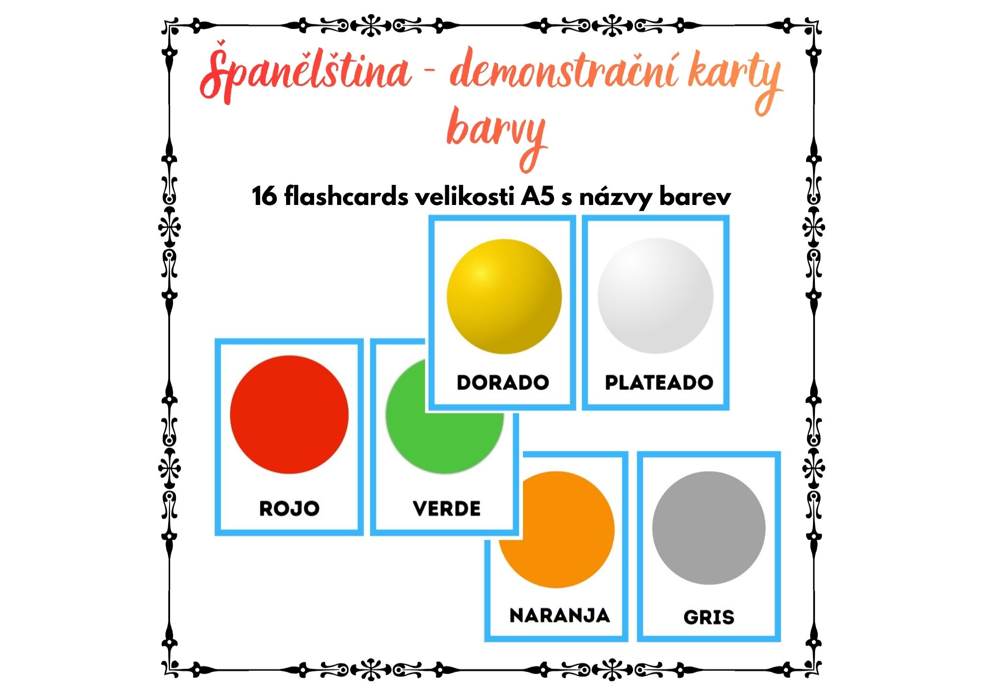 Soubor s 16 demonstračními kartami velikosti A5 na téma barvy. Karty lze použít na výzdobu třídy i jako materiál pro přímou výuku barev - např. Kimova hra, běhavka po třídě, vyvozování slovíček, popis karet apod.