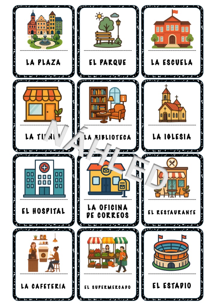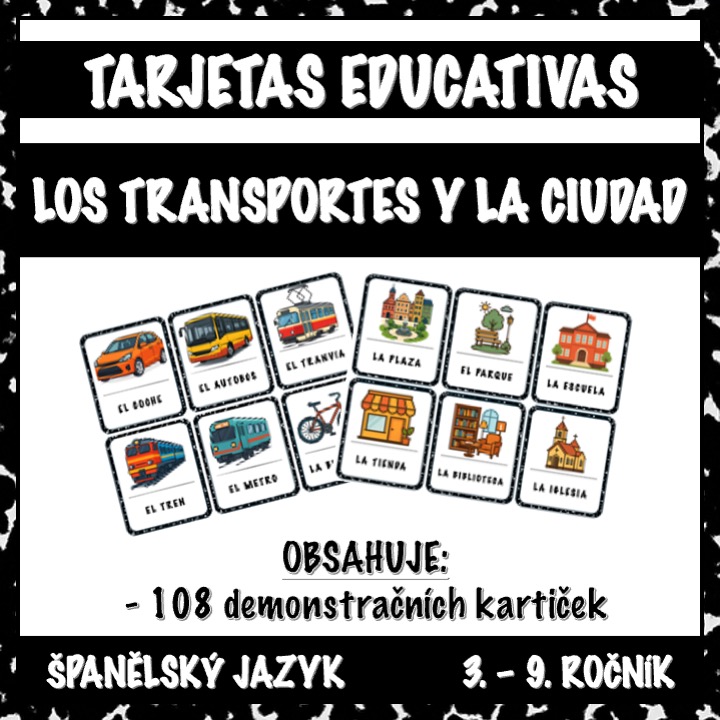 - Vizuálně atraktivní aktivita, která pomáhá žákům osvojit si slovní zásobu na téma doprava a město ve španělštině. Kartičky lze využít k frontální výuce, skupinové práci, hrách nebo samostatnému procvičování slovní zásoby. Aktivita podporuje zapamatování názvů objektů z prostředí dopravy a města, rozšiřuje slovní zásobu a zlepšuje výslovnost. Je ideální pro žáky, kteří se učí španělštinu jako cizí jazyk na úrovni A1–A2 a vytváří poutavou atmosféru v hodině.