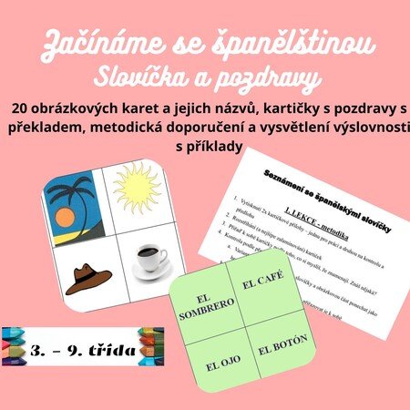 Pracovní list obsahuje jako úvodní seznámení s jazykem úvodní slovní zásobu a pozdravy formou kartiček. Součástí je didaktický postup pro práci s kartičkami, informace o výslovnosti. Karty s obrázky/ španělskými slovíčky jsou k sobě řazeny s českým překladem podle umístění políčka.