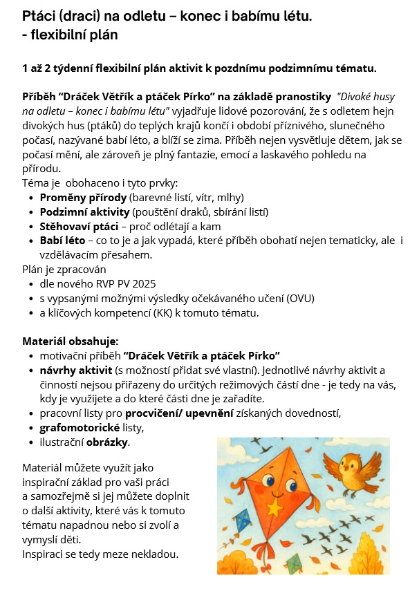 Ptáci 🐦(draci) na odletu – konec i babímu létu - flexibilní plán